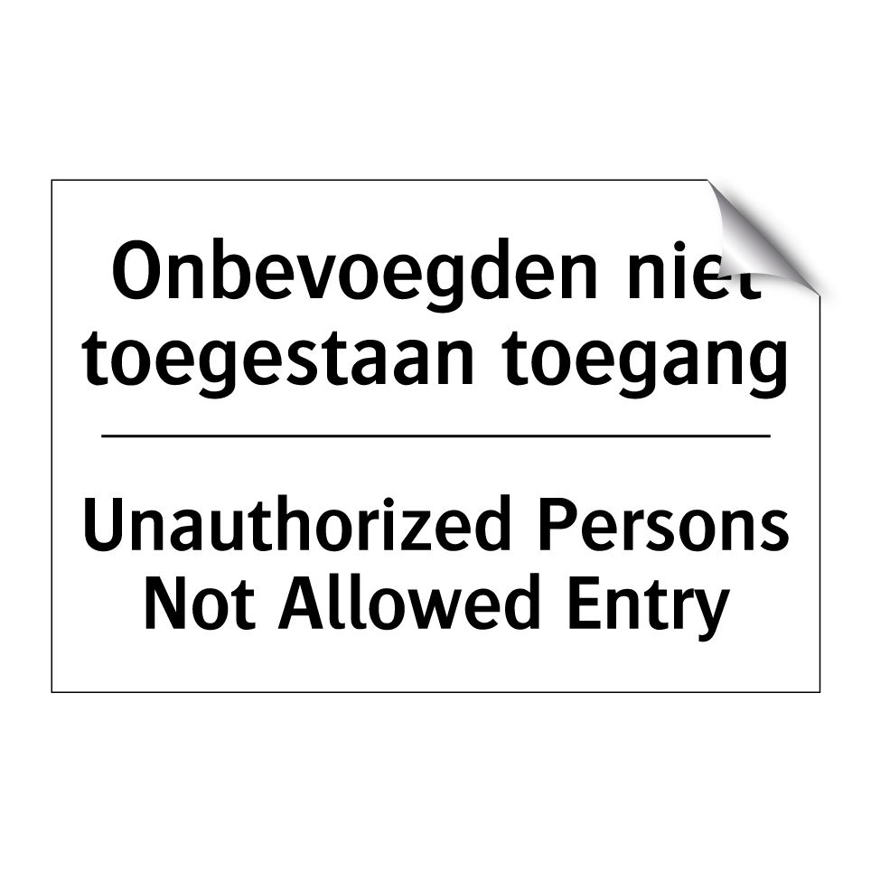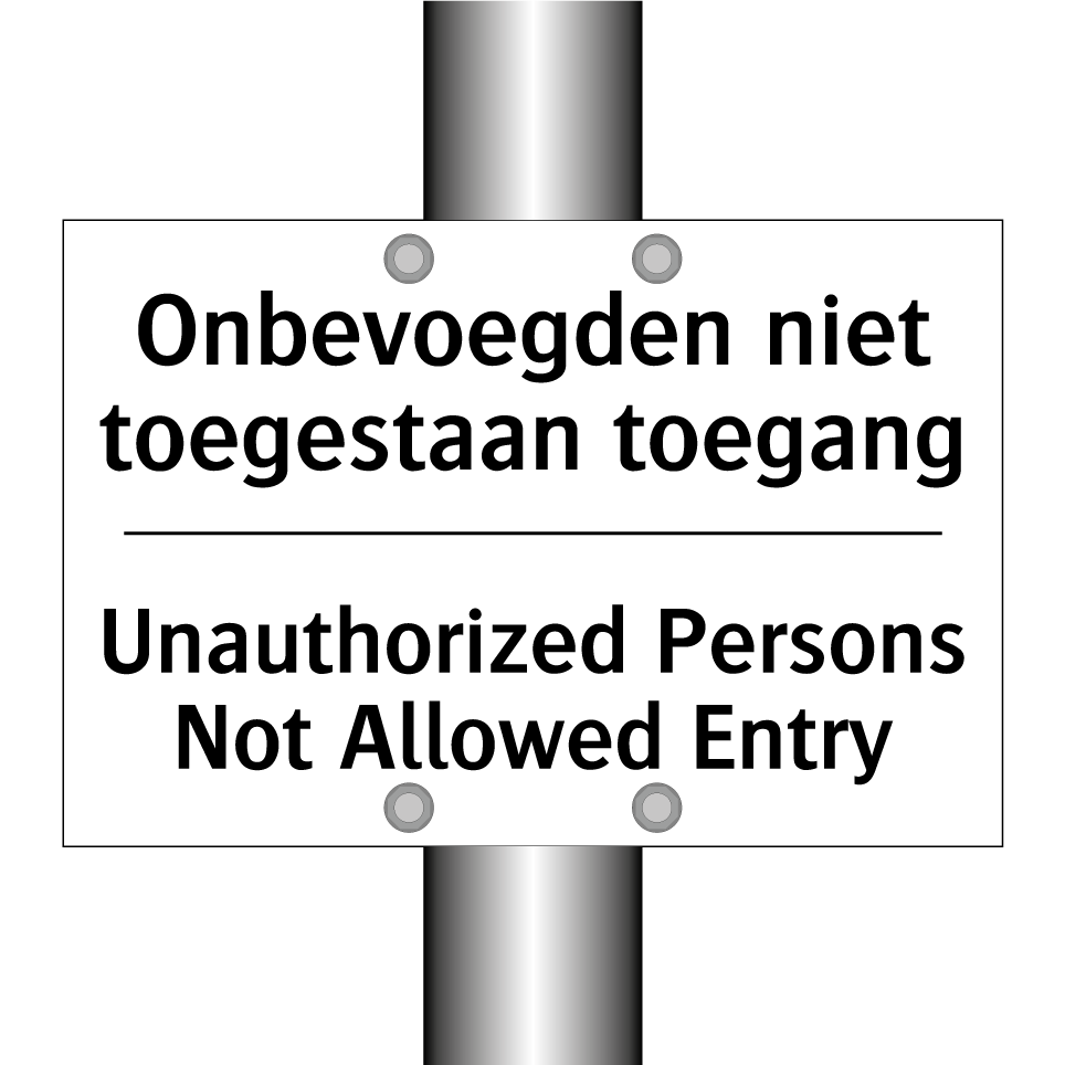 Verbodsbord met de tekst Onbevoegden niet toegestaan toegang en in het Engels: Unauthorized Persons Not Allowed Entry