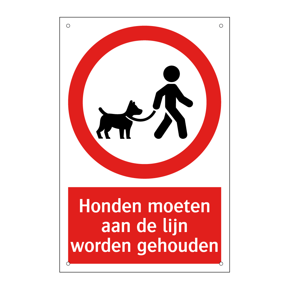 Verbodsbord met de tekst Honden moeten aan de lijn worden gehouden