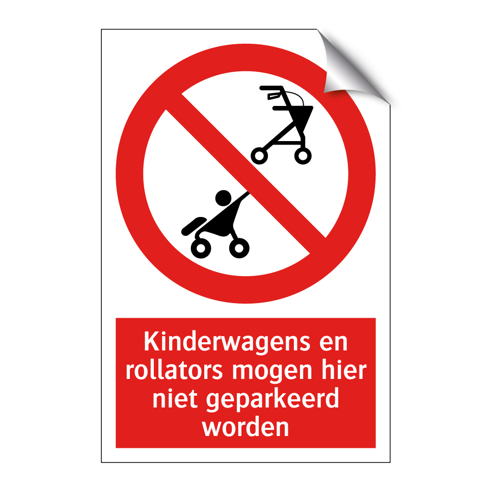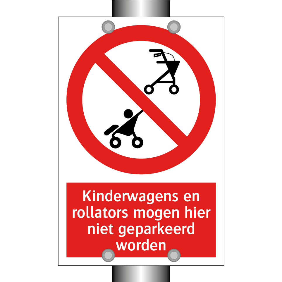 Verbodsbord met de tekst Kinderwagens en rollators mogen hier niet geparkeerd worden