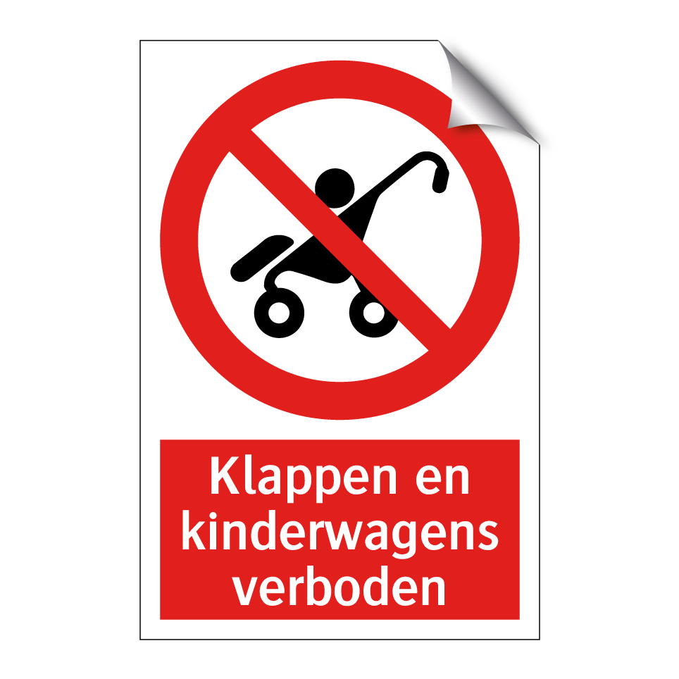 Verbodsbord met de tekst Klappen en kinderwagens verboden