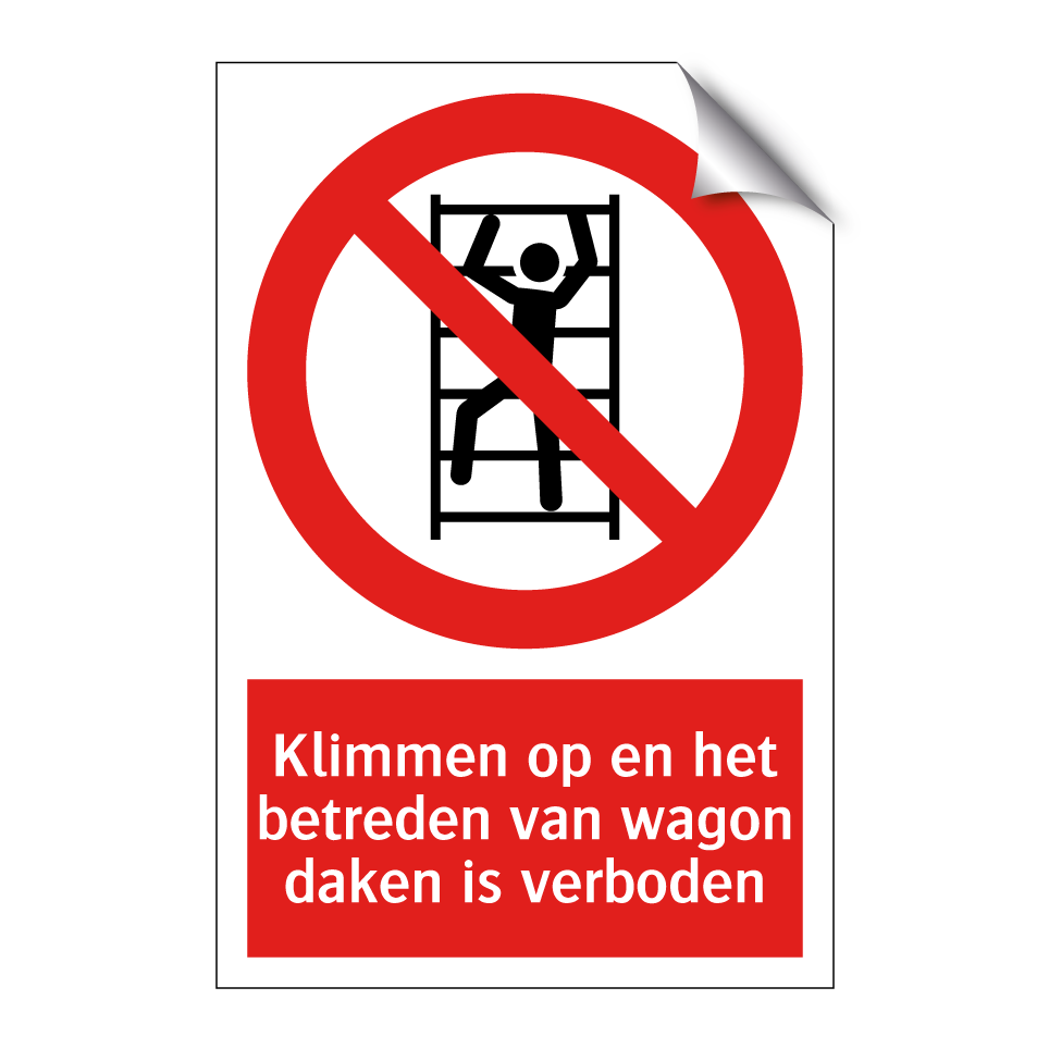Verbodsbord met de tekst Klimmen op en het betreden van wagon daken is verboden