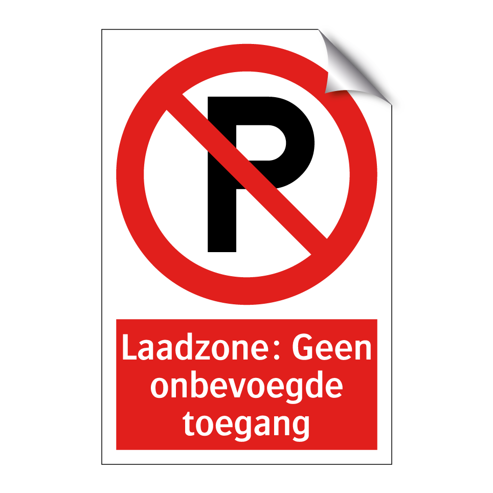 Verbodsbord met de tekst Laadzone: Geen onbevoegde toegang