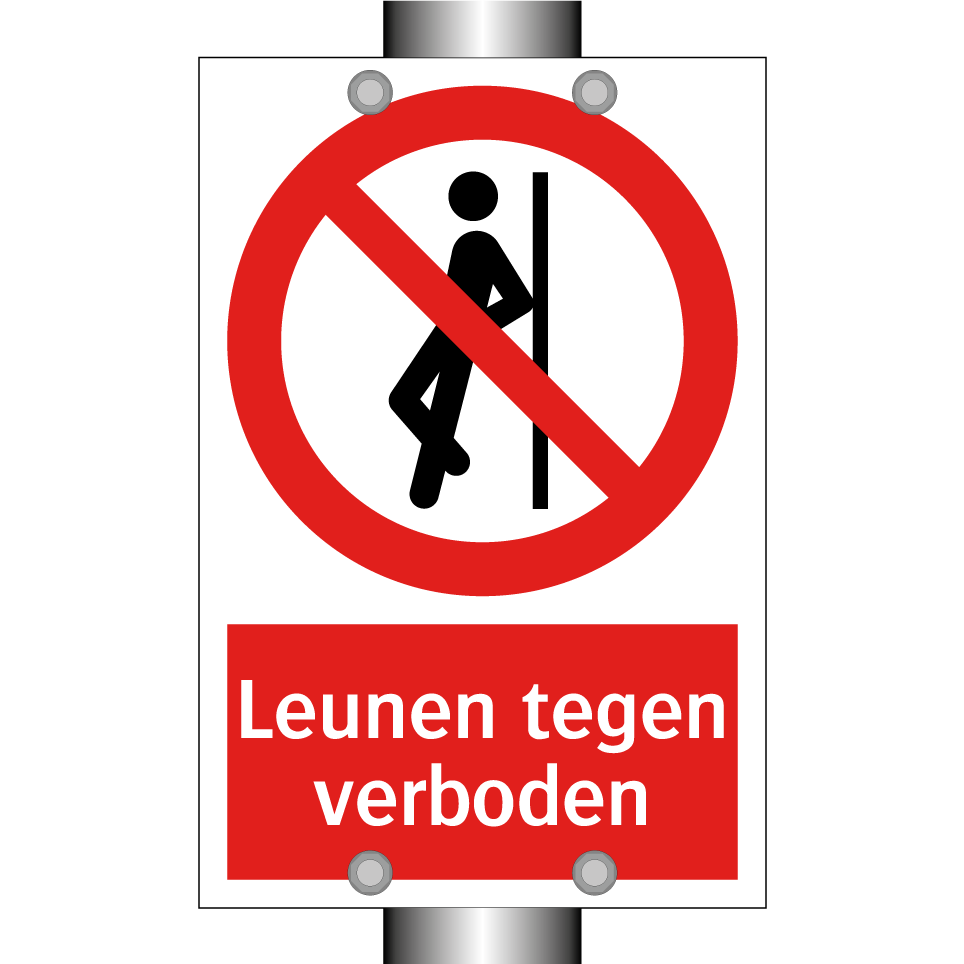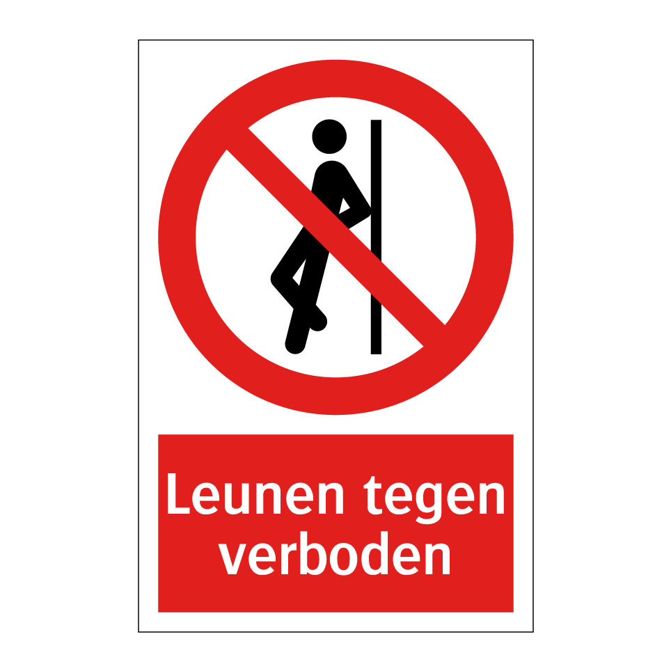 Dit verbodsbord is een essentiële toevoeging voor elke omgeving waar veiligheid en orde prioriteit zijn. Met zijn opvallende rode achtergrond en duidelijke witte tekst, trekt het onmiddellijk de aandacht en communiceert het een belangrijk verbod. Deze waarschuwingsbord is ideaal voor gebruik in openbare ruimtes zoals winkelcentra, kantoren, en industriële omgevingen waar het leunen tegen bepaalde structuren of objecten ongewenst is. Door het strategisch te plaatsen op muren, hekken of andere zichtbare plekken, helpt het om ongewenst gedrag te voorkomen en de veiligheid te waarborgen. Dit bord is een onmisbaar hulpmiddel voor het handhaven van regels en het bevorderen van een veilige omgeving.