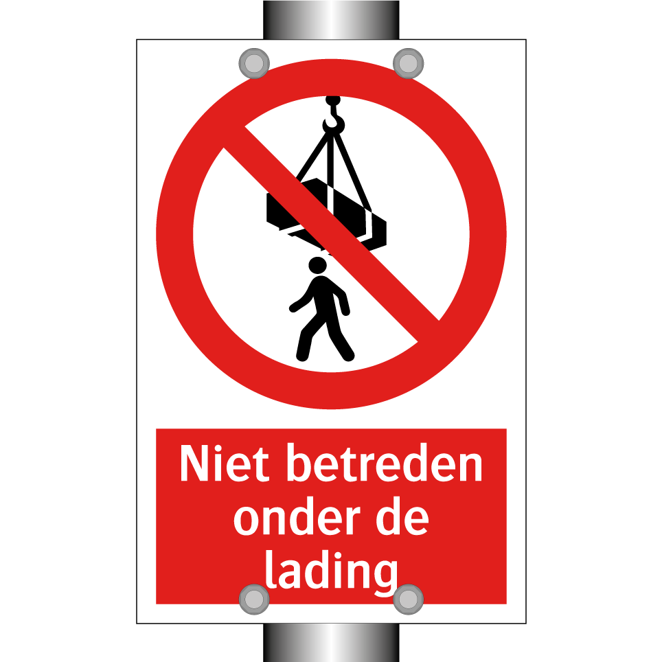 Verbodsbord met de tekst Niet betreden onder de lading