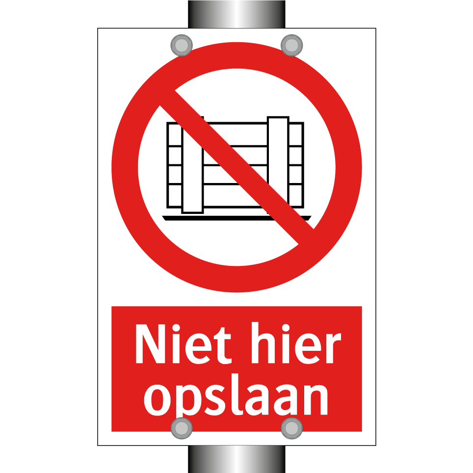 Deze opvallende verbodsbord is essentieel voor het handhaven van orde en veiligheid op diverse locaties. Het bord is ideaal voor gebruik in magazijnen, opslagruimtes en andere gebieden waar het belangrijk is om duidelijk aan te geven dat opslag niet is toegestaan. Door de heldere rode achtergrond en witte tekst met een duidelijke symbool, trekt het onmiddellijk de aandacht en voorkomt het ongewenste opslag. Plaats dit bord op strategische plekken zoals ingangen, gangen of nabij opslagruimtes om ervoor te zorgen dat de boodschap niet over het hoofd wordt gezien. Dit verbodsbord helpt bij het voorkomen van potentiële veiligheidsrisico's en bevordert een georganiseerde omgeving.