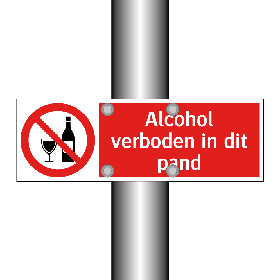 Verbodsbord met de tekst Alcohol verboden in dit pand