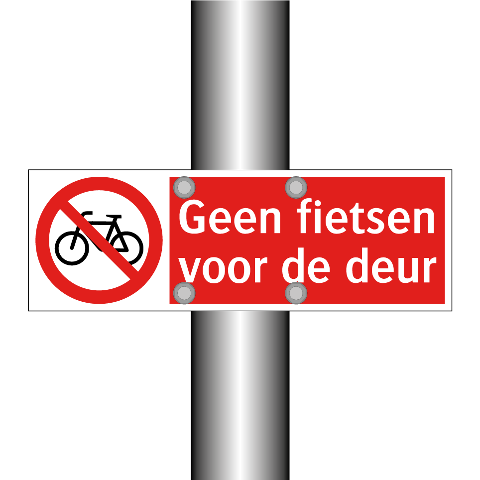 Verbodsbord met de tekst Geen fietsen voor de deur