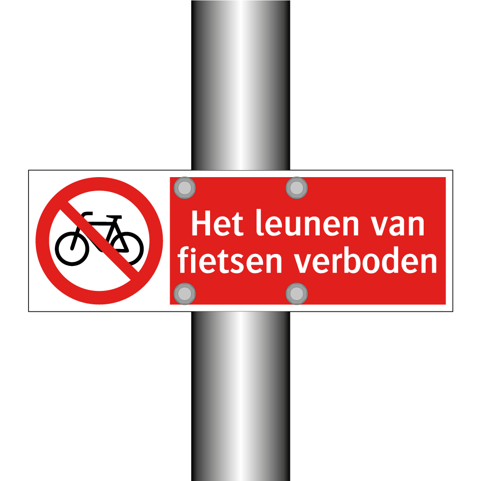 Verbodsbord met de tekst Het leunen van fietsen verboden