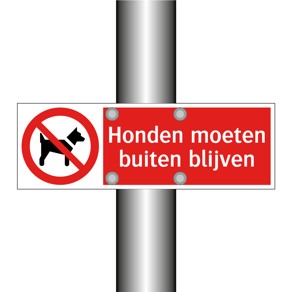 Verbodsbord met de tekst Honden moeten buiten blijven