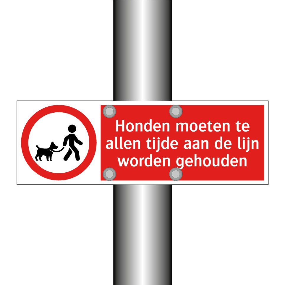 Verbodsbord met de tekst Honden moeten te allen tijde aan de lijn worden gehouden
