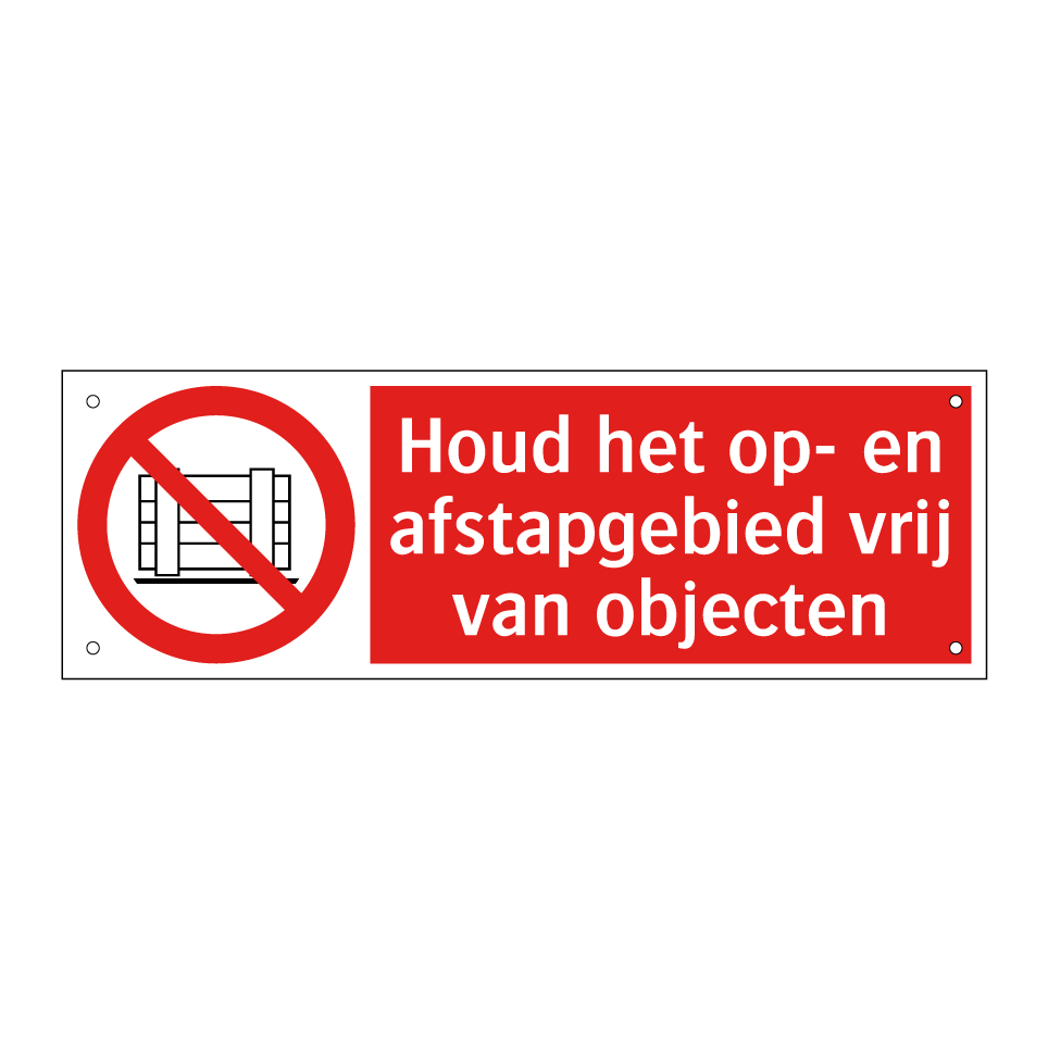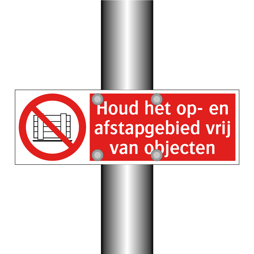 Verbodsbord met de tekst Houd het op- en afstapgebied vrij van objecten
