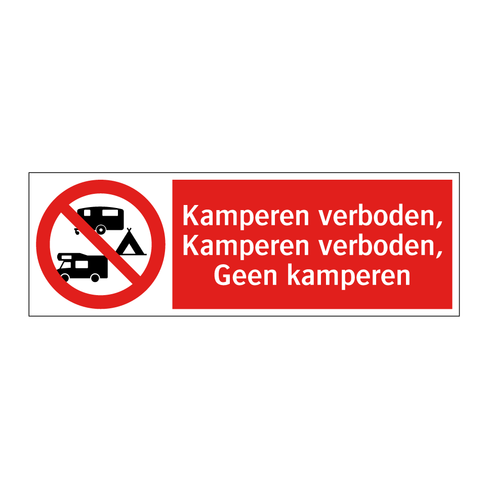 Verbodsbord met de tekst Kamperen verboden, Kamperen verboden, Geen kamperen