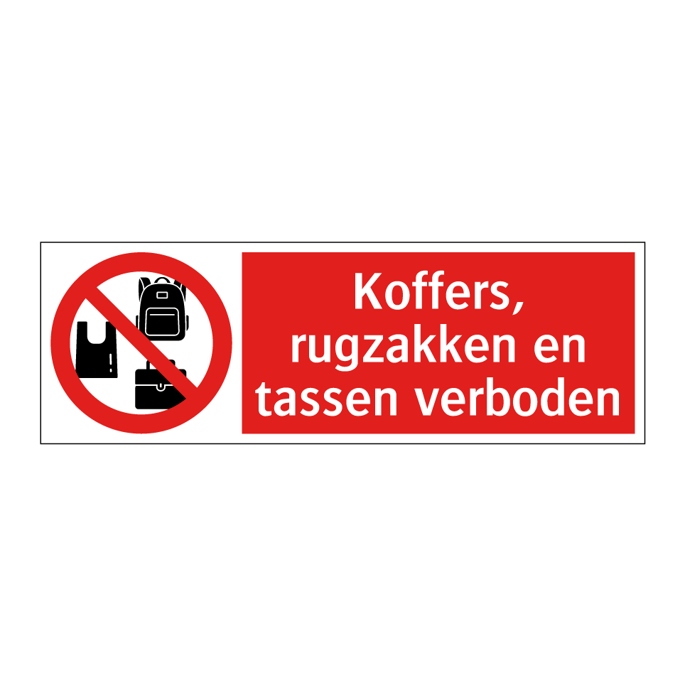 Verbodsbord met de tekst Koffers, rugzakken en tassen verboden