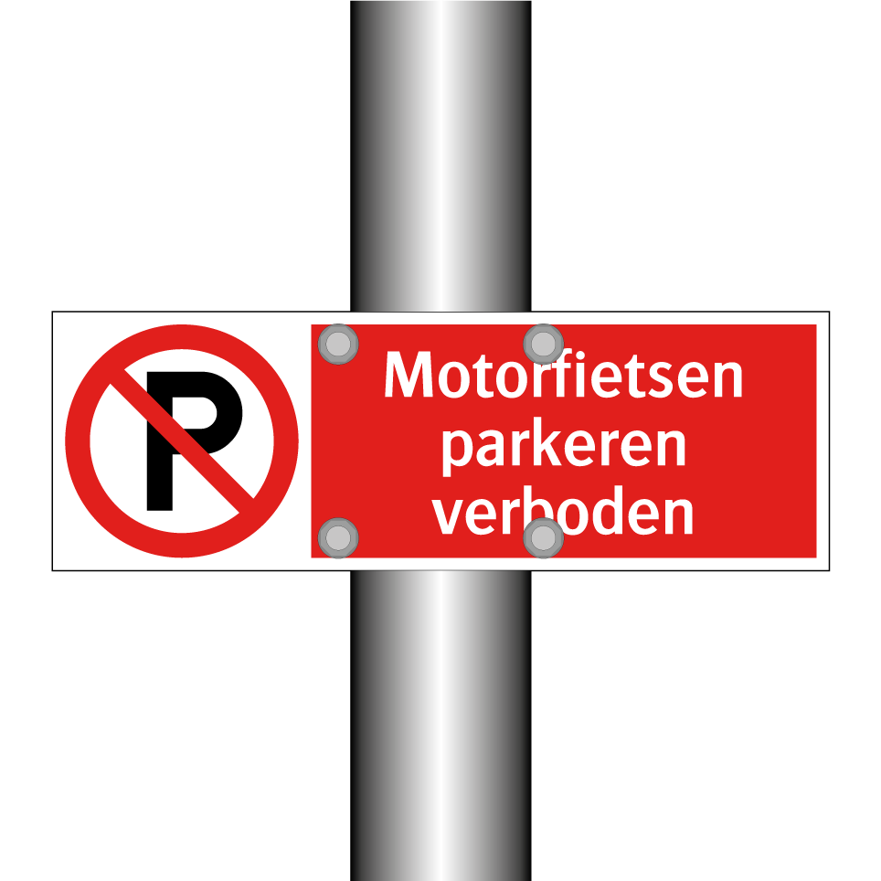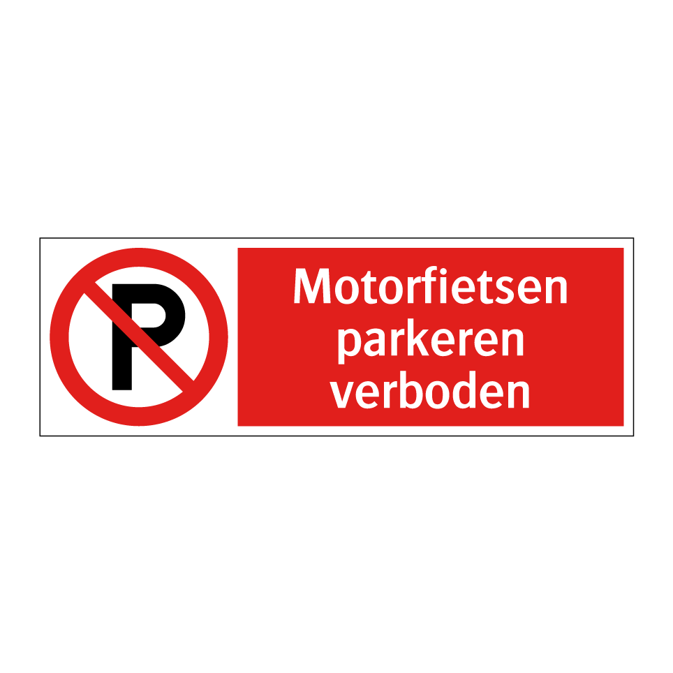 Verbodsbord met de tekst Motorfietsen parkeren verboden