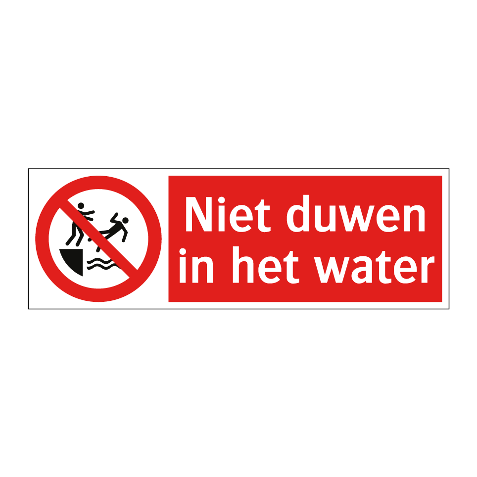 Deze opvallende verbodsbord is essentieel voor het waarborgen van veiligheid in gebieden met water. Het is ideaal voor gebruik bij zwembaden, vijvers, meren en andere waterpartijen waar het belangrijk is om mensen te waarschuwen om niet in het water te duwen. De duidelijke rode achtergrond en witte tekst met symbool zorgen ervoor dat de boodschap niet over het hoofd wordt gezien. Plaats deze verbodsbord op strategische locaties zoals ingangen, langs paden of bij waterkanten om ongewenst gedrag te voorkomen en de veiligheid van bezoekers te garanderen. Deze bord is een onmisbaar onderdeel van elke veiligheidsmaatregel rondom water.