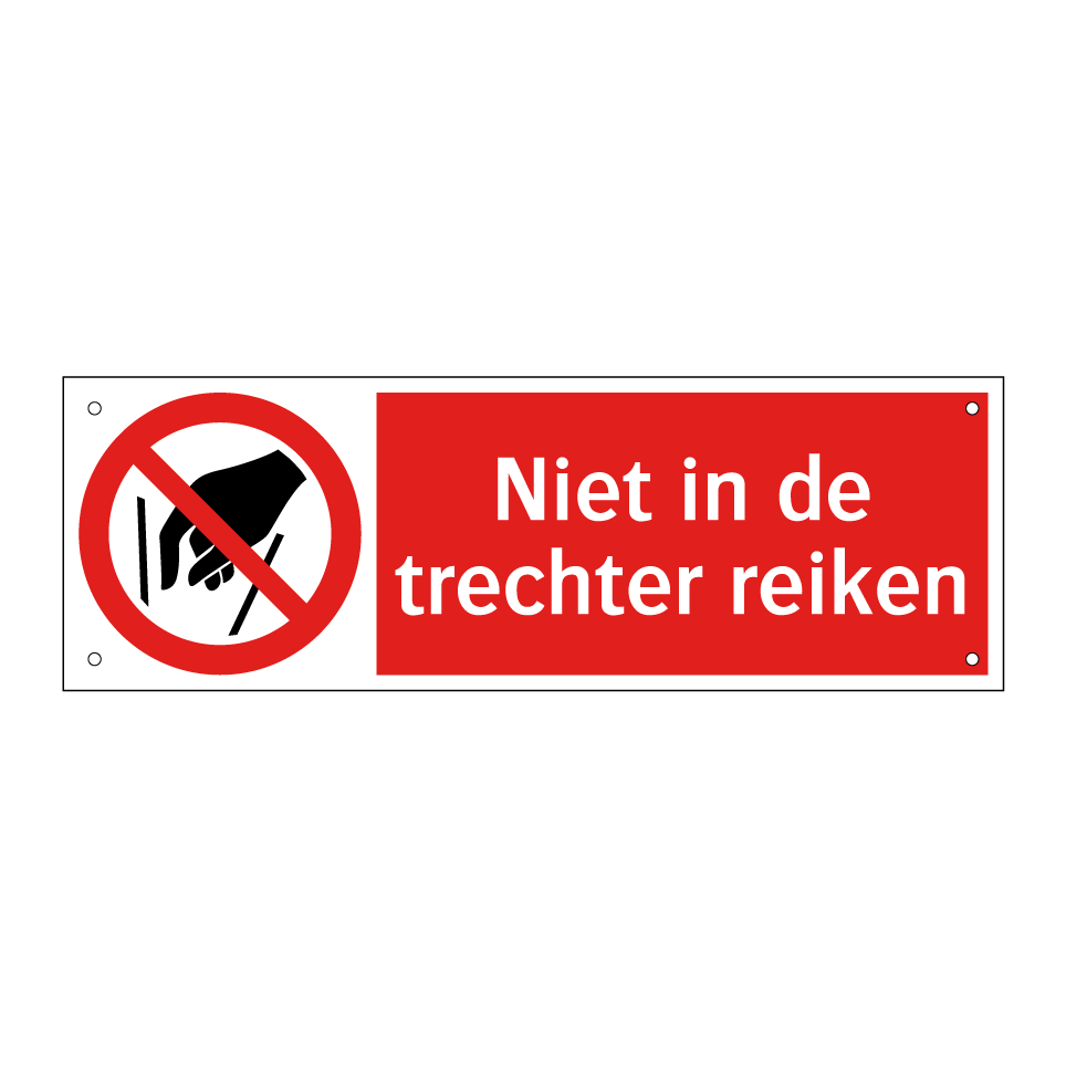 Deze opvallende verbodsbord is essentieel voor het handhaven van veiligheid in industriële omgevingen. Het bord, met zijn rode achtergrond en duidelijke witte tekst, waarschuwt effectief tegen het reiken in de trechter, een cruciale maatregel om ongelukken te voorkomen. Ideaal voor gebruik in fabrieken, magazijnen en andere productieomgevingen waar machines met trechters worden gebruikt. Door het strategisch te plaatsen bij ingangen van werkruimtes of direct naast de betreffende apparatuur, zorgt het voor een constante herinnering aan de veiligheidsvoorschriften. Dit verbodsbord is een onmisbaar onderdeel van een veilig werkklimaat en helpt bij het minimaliseren van risico's.