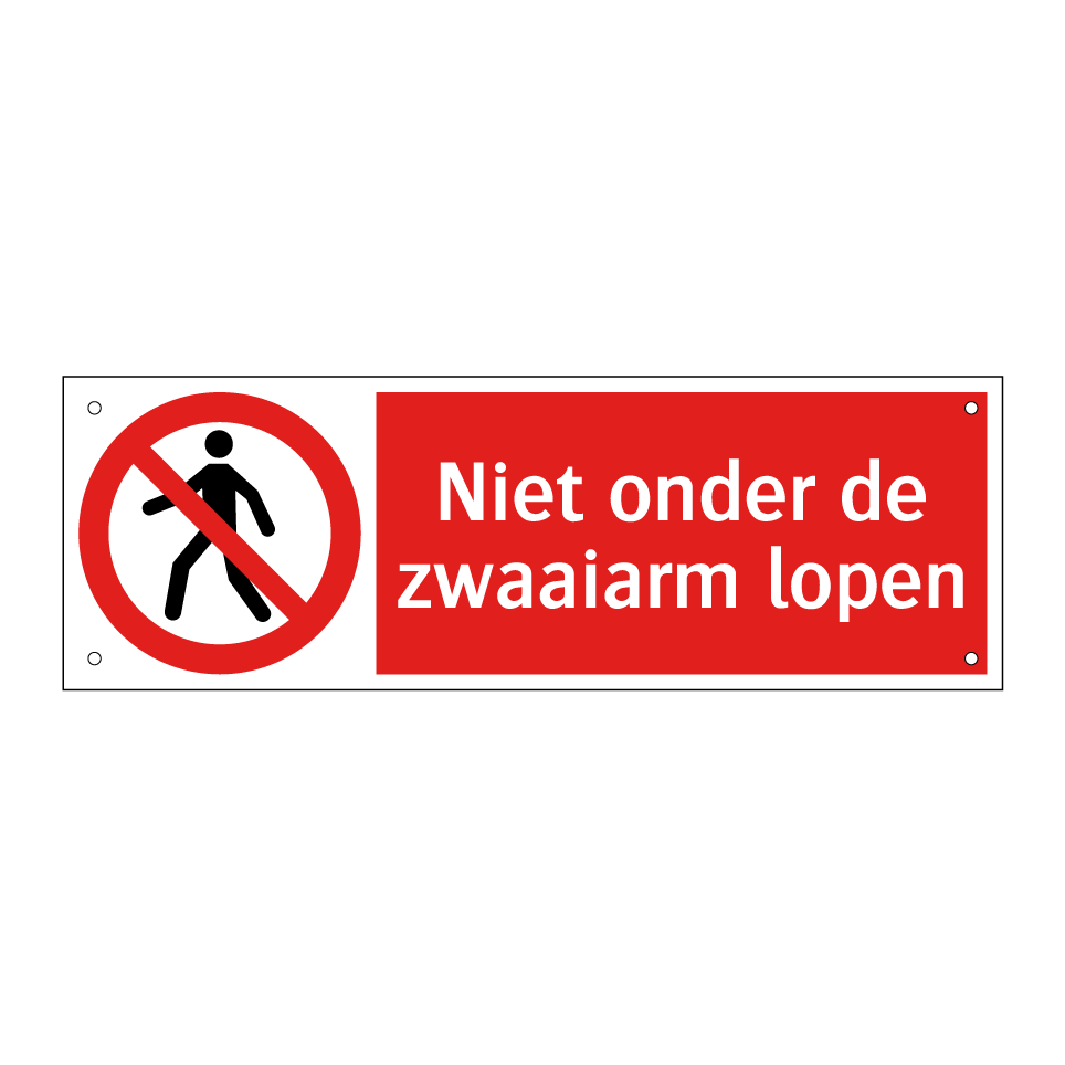 Verbodsbord met de tekst Niet onder de zwaaiarm lopen