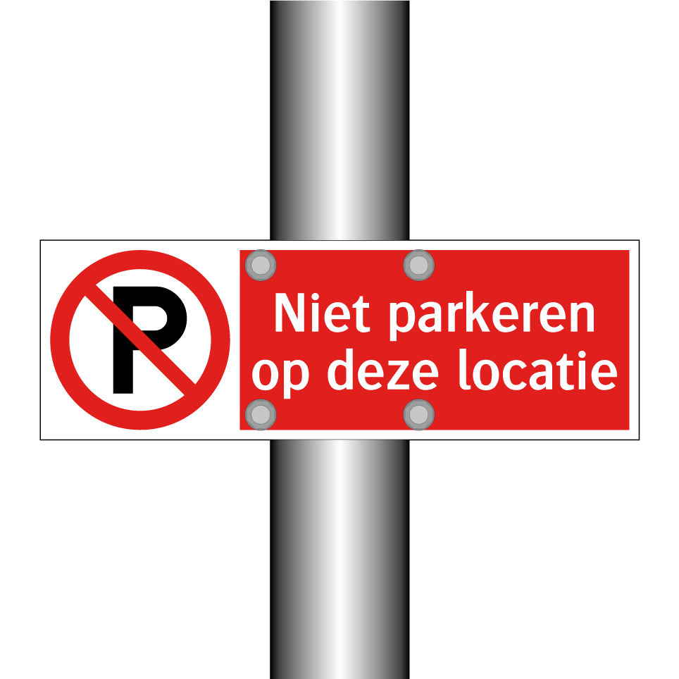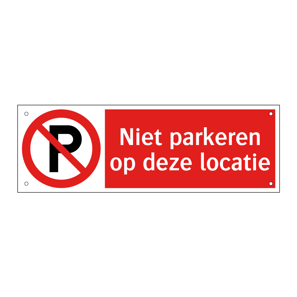 Verbodsbord met de tekst Niet parkeren op deze locatie