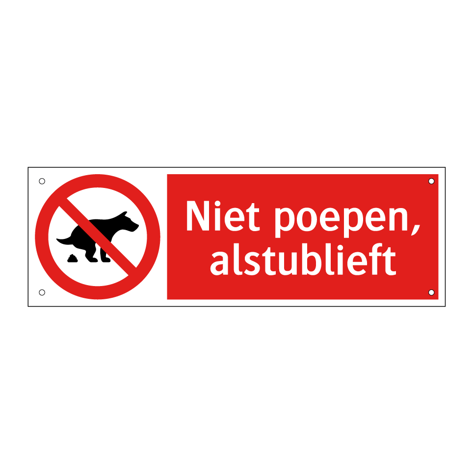 Verbodsbord met de tekst Niet poepen, alstublieft
