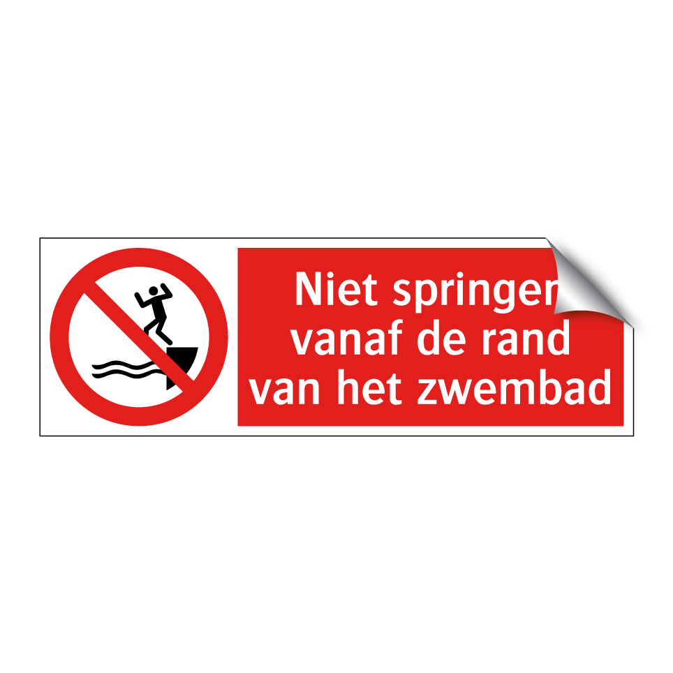 Deze opvallende verbodsbord is essentieel voor de veiligheid rondom zwembaden. Het waarschuwt bezoekers om niet van de rand te springen, wat ongelukken kan voorkomen. Ideaal voor gebruik in openbare zwembaden, recreatiecentra en privézwembaden, deze bord kan strategisch worden geplaatst bij de zwembadrand of op andere zichtbare plekken. Door de duidelijke rode achtergrond en witte tekst trekt het direct de aandacht van zwemmers en zorgt het voor een veilige omgeving. Dit waarschuwingsbord is een onmisbaar onderdeel van elke zwembadomgeving waar veiligheid voorop staat.