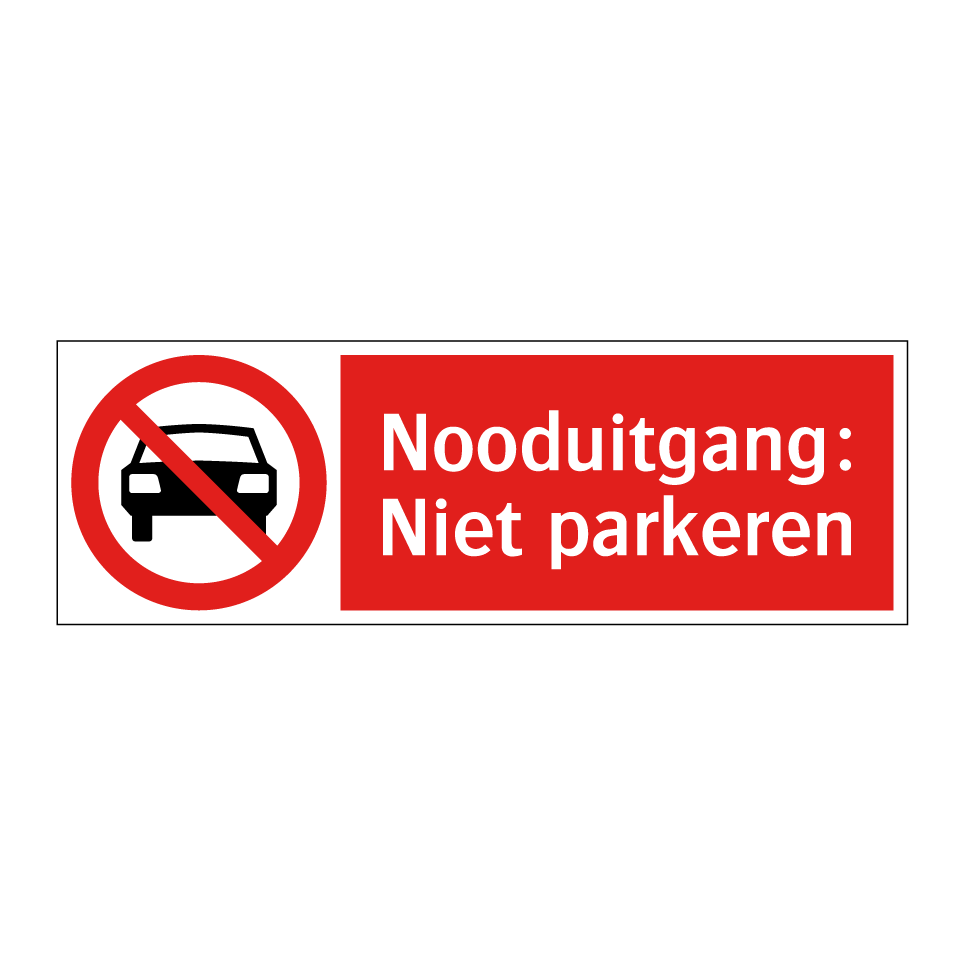 Verbodsbord met de tekst Nooduitgang: Niet parkeren