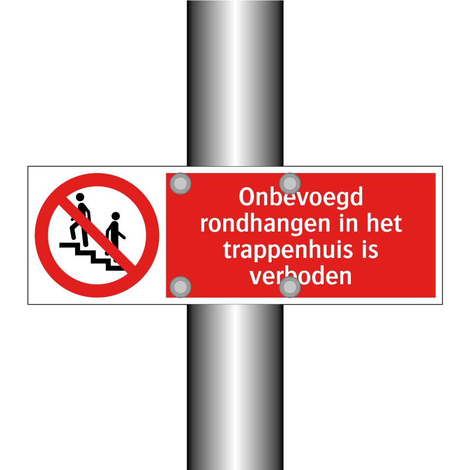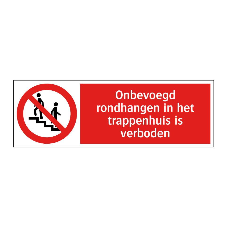 Verbodsbord met de tekst Onbevoegd rondhangen in het trappenhuis is verboden