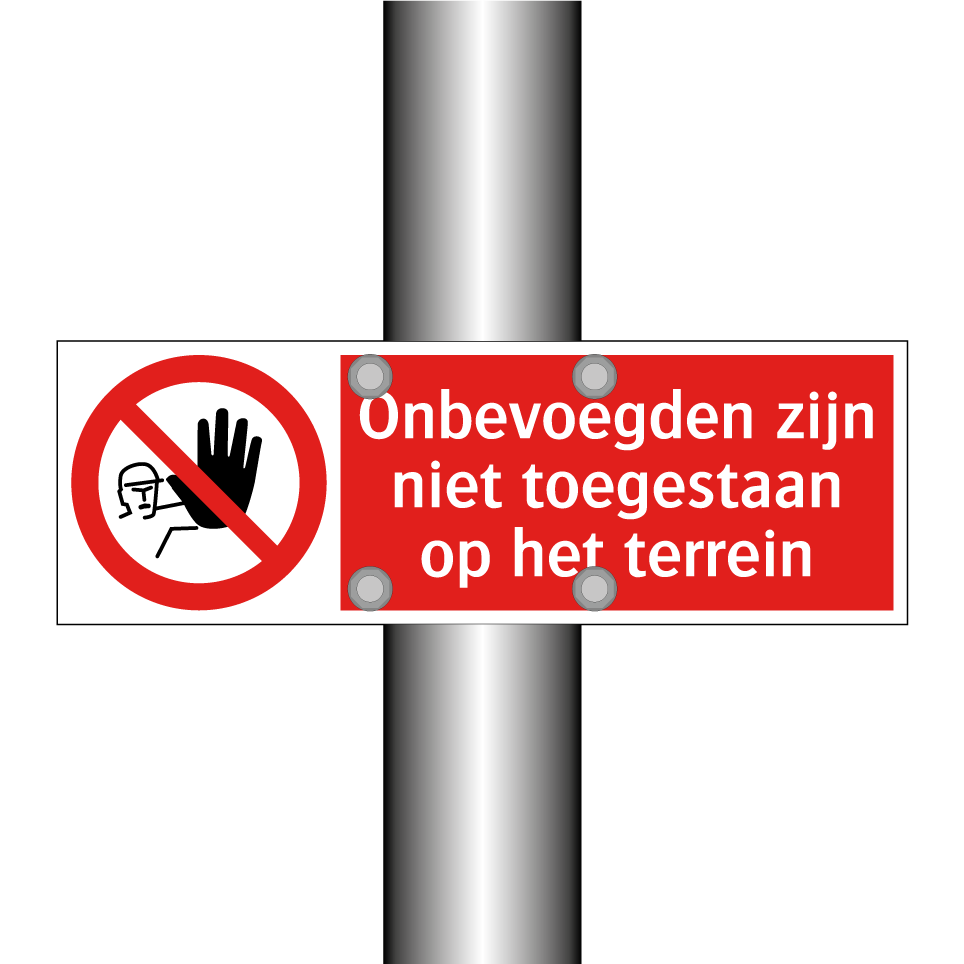 Verbodsbord met de tekst Onbevoegden zijn niet toegestaan op het terrein