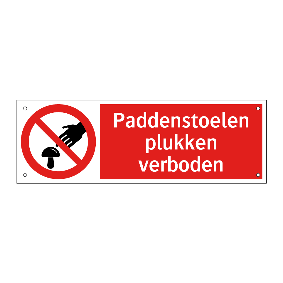 Verbodsbord met de tekst Paddenstoelen plukken verboden