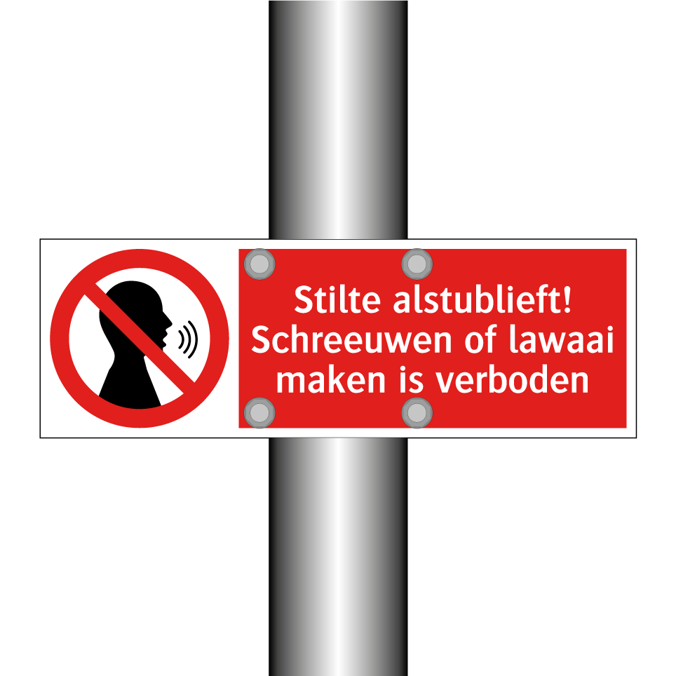 Verbodsbord met de tekst Stilte alstublieft! Schreeuwen of lawaai maken is verboden