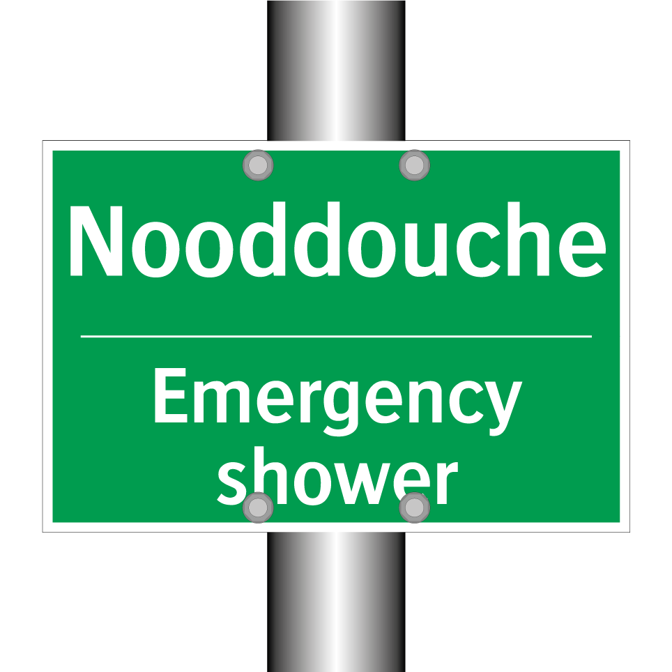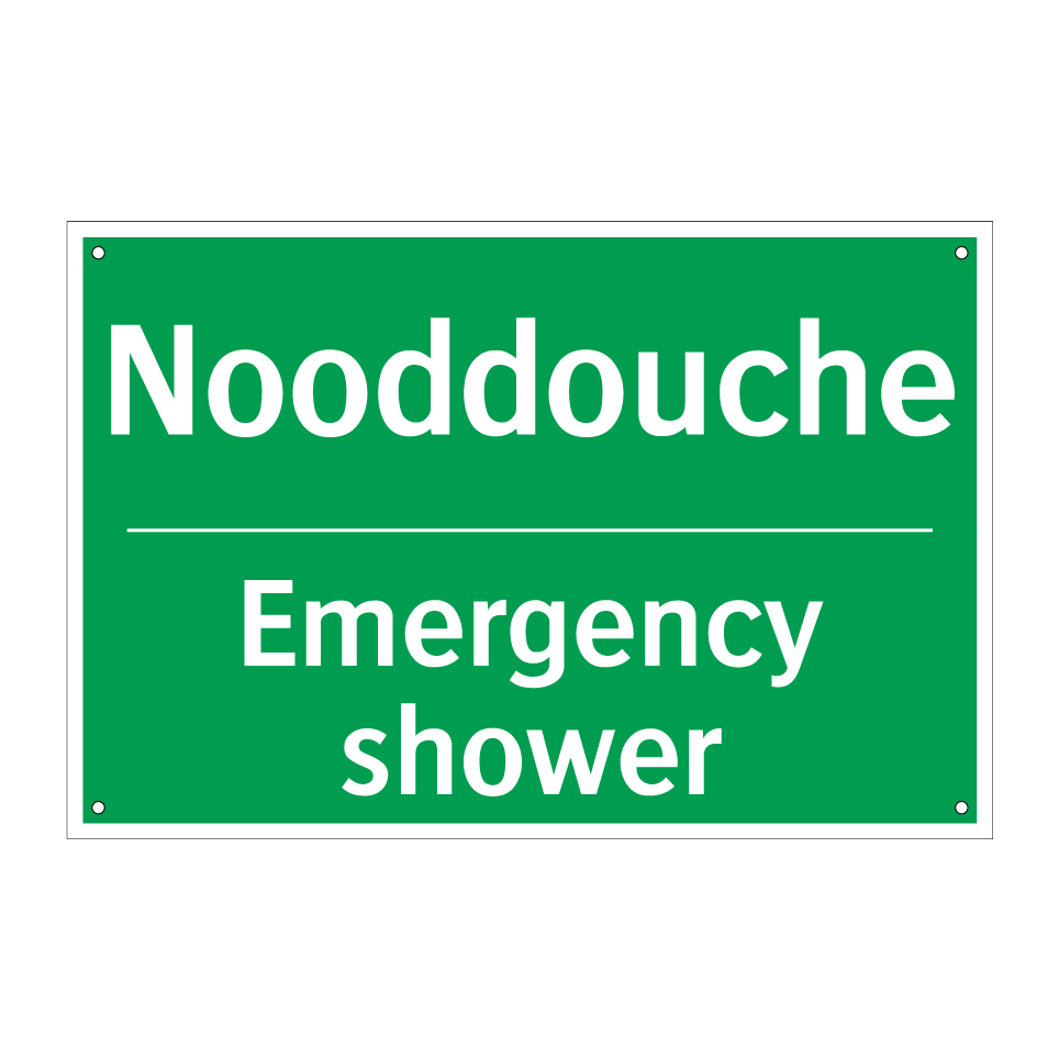 Dit noodbord is essentieel voor elke werkplek waar veiligheid voorop staat. Het bord geeft duidelijk aan waar de nooddouche zich bevindt, wat cruciaal is in noodsituaties. Dankzij de tweetalige tekst in zowel Nederlands als Engels, is het bord gemakkelijk te begrijpen voor zowel lokale medewerkers als internationale bezoekers. Dit noodbord kan strategisch worden geplaatst in laboratoria, fabrieken, werkplaatsen en andere industriële omgevingen waar chemische stoffen worden gebruikt. Door de opvallende groene kleur met witte tekst is het bord snel te herkennen, wat de reactietijd in een noodsituatie aanzienlijk kan verkorten. Zorg voor een veilige werkomgeving door dit noodbord op zichtbare plekken te installeren.