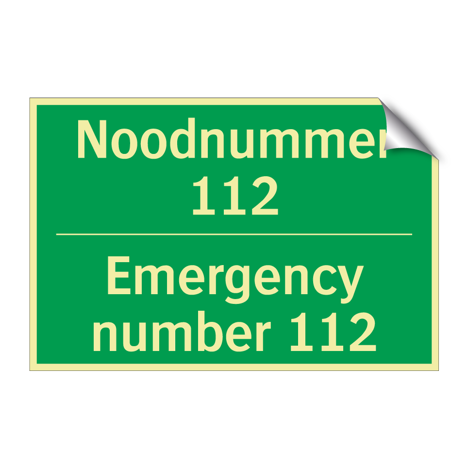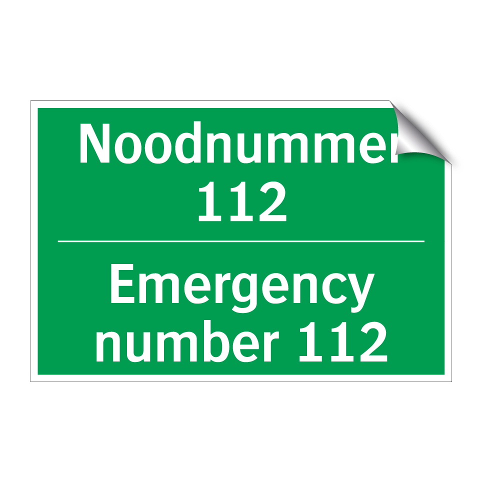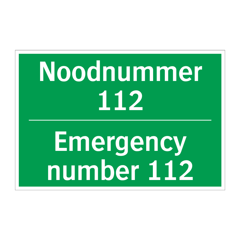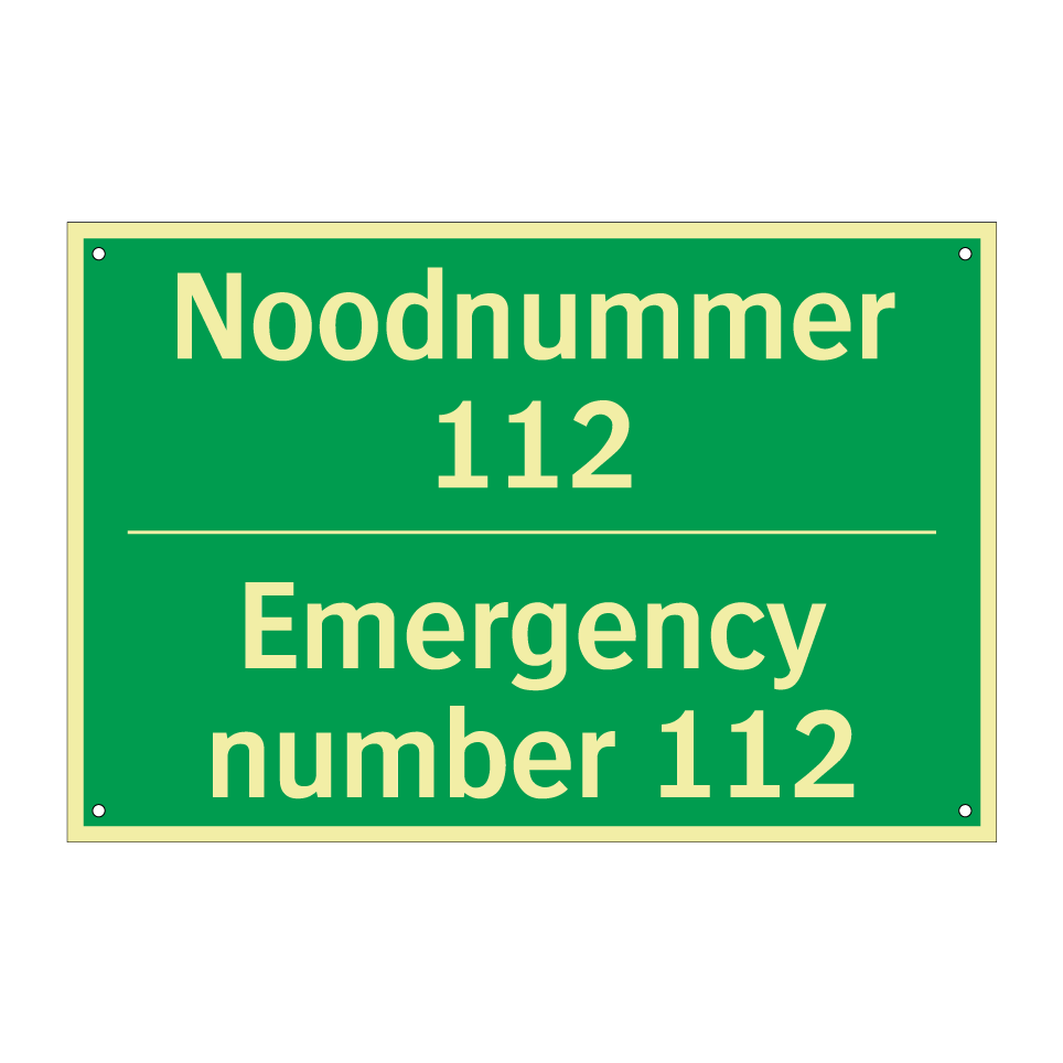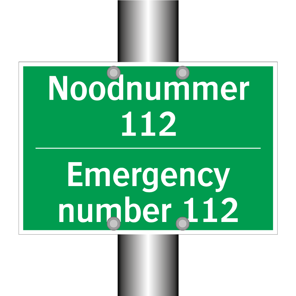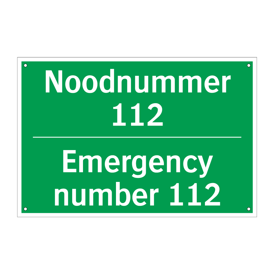 Noodbord met tekst Noodnummer 112 / Emergency number 112