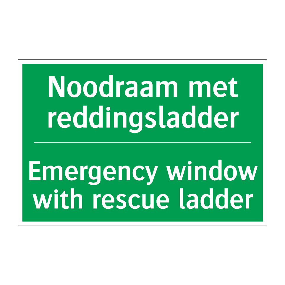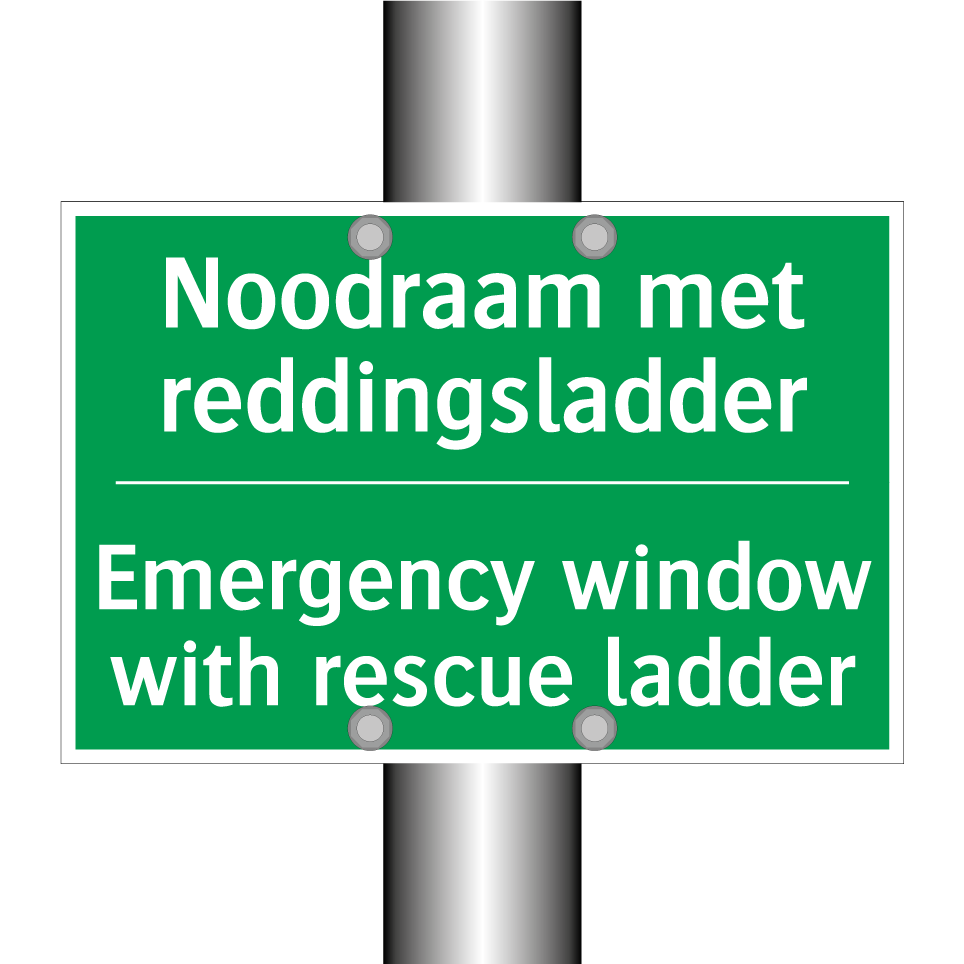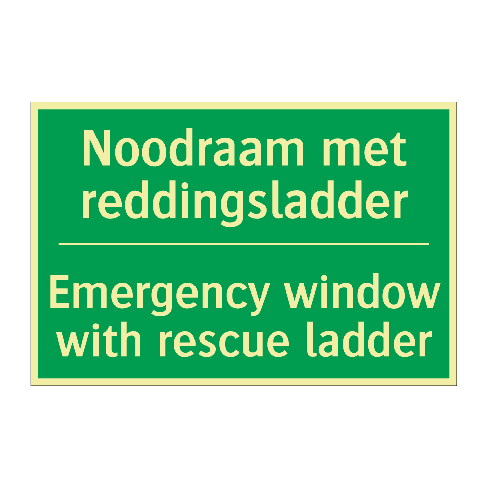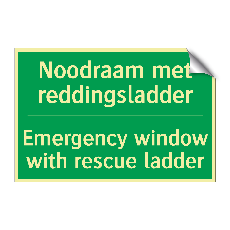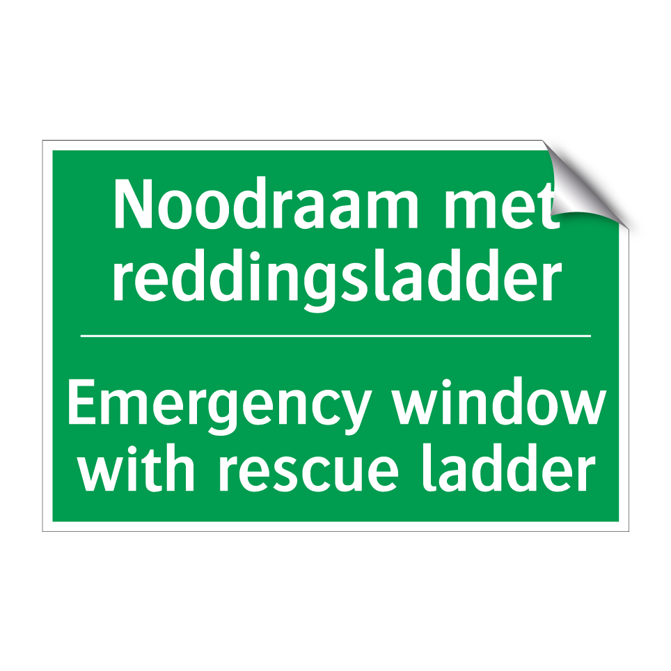 Noodbord met tekst Noodraam met reddingsladder / Emergency window with rescue ladder