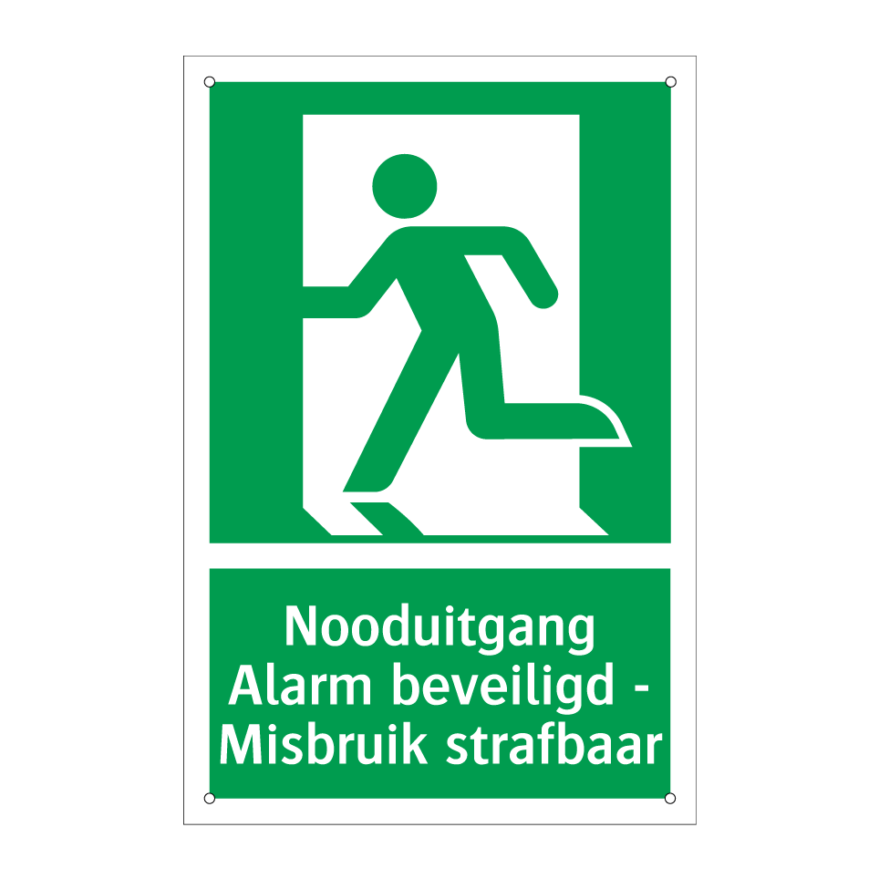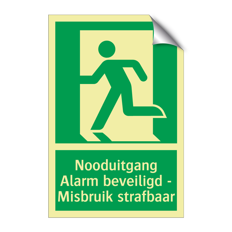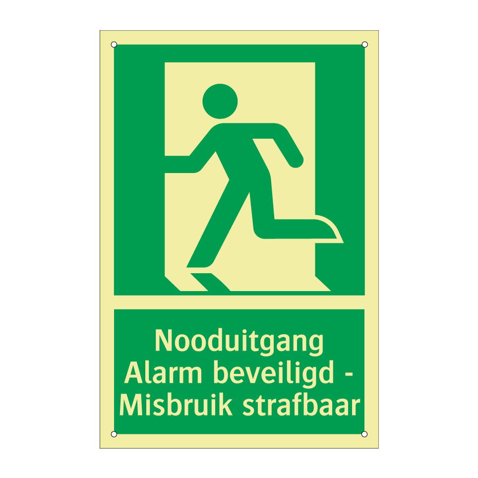 Noodbord met tekst Nooduitgang - Alarm beveiligd - Misbruik strafbaar