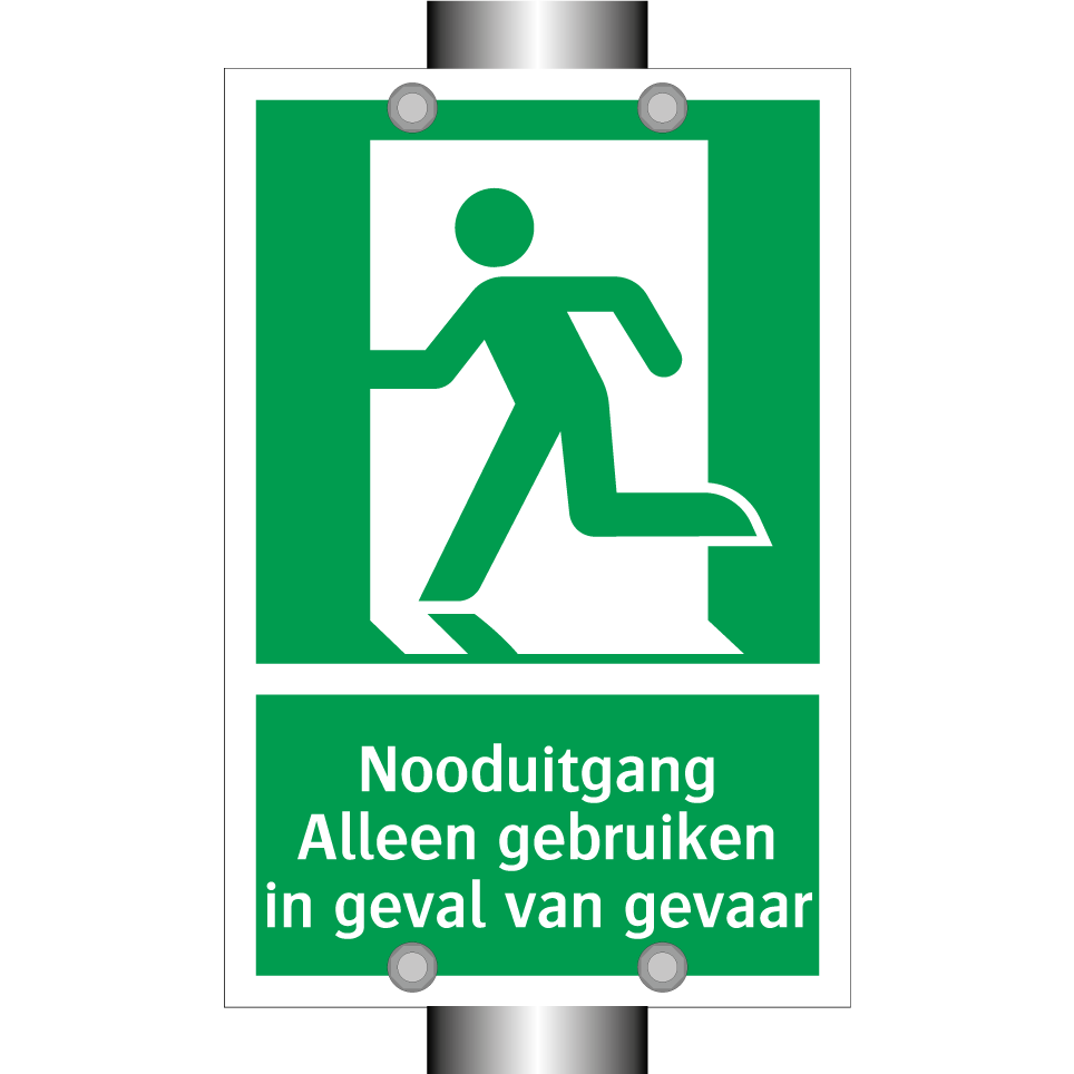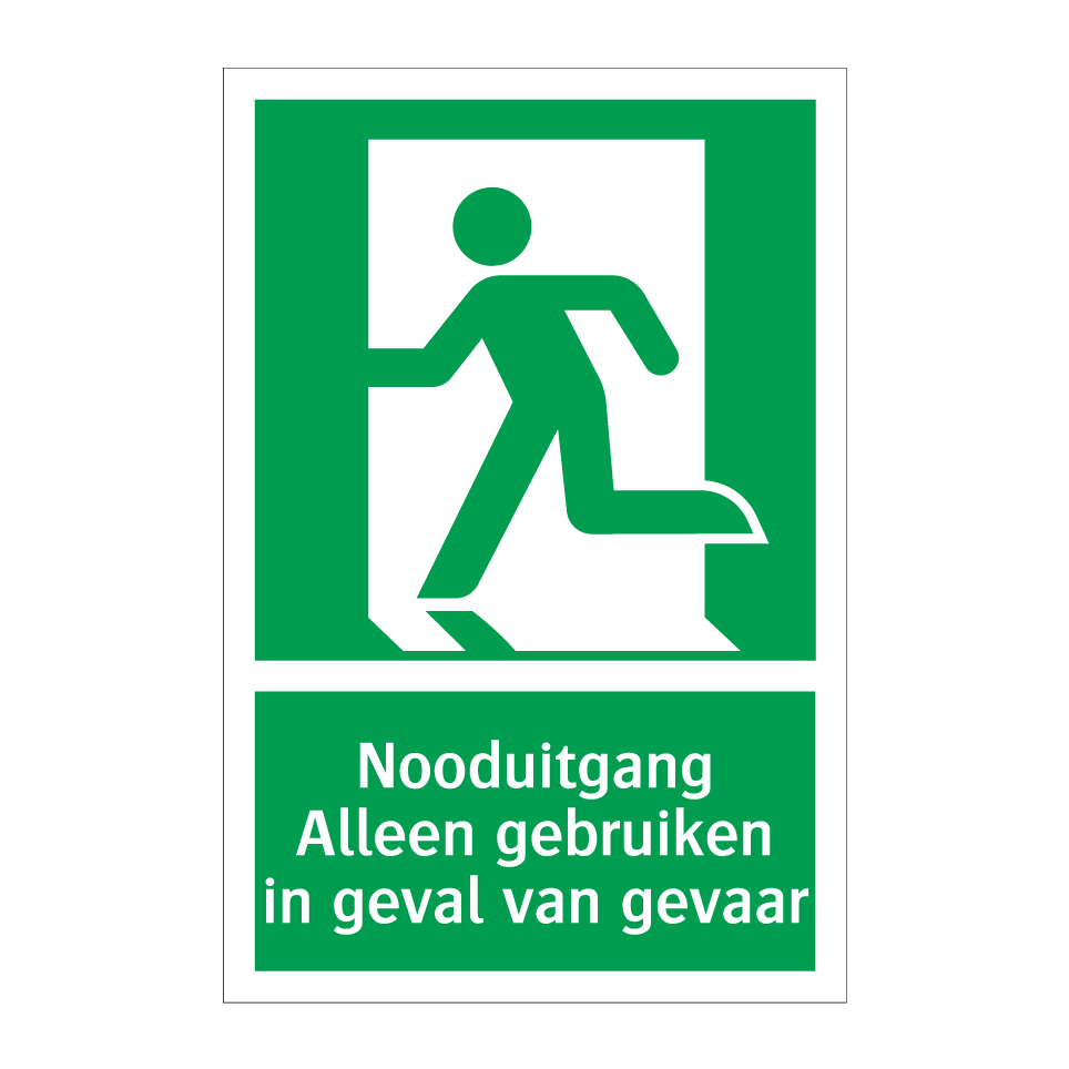 Deze noodbord is essentieel voor de veiligheid in elke omgeving. Het geeft duidelijk aan waar de nooduitgang zich bevindt en mag alleen worden gebruikt in geval van nood. Plaats deze noodbord in gangen, bij trappenhuizen, in kantoren, scholen, ziekenhuizen en andere openbare gebouwen om ervoor te zorgen dat iedereen snel en veilig kan evacueren bij gevaar. De groene achtergrond met witte tekst en een duidelijke symbool zorgt voor maximale zichtbaarheid, zelfs in stressvolle situaties. Zorg ervoor dat uw gebouw voldoet aan de veiligheidsvoorschriften door deze noodbord op strategische locaties te plaatsen.