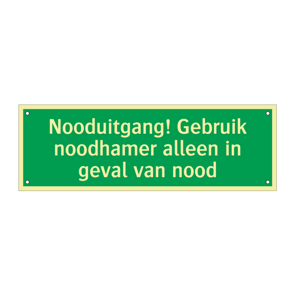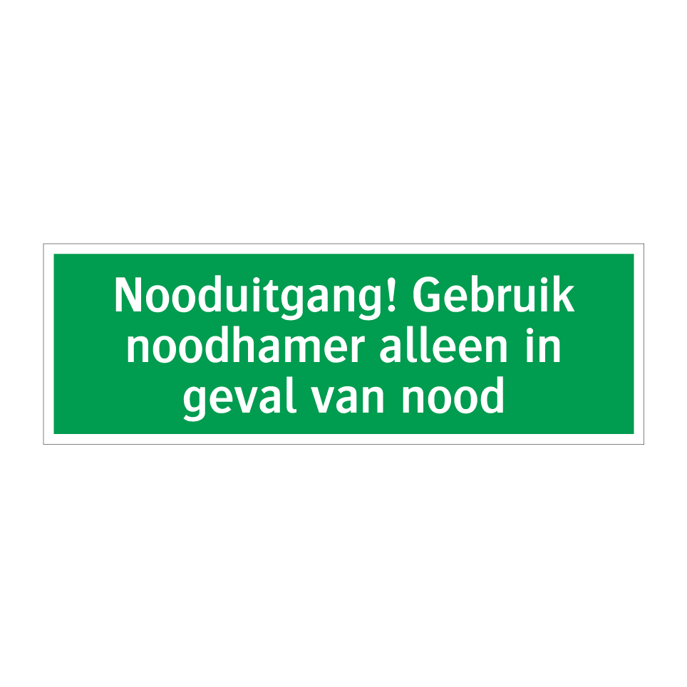 Noodbord met tekst Nooduitgang! Gebruik noodhamer alleen in geval van nood