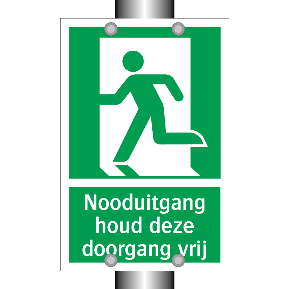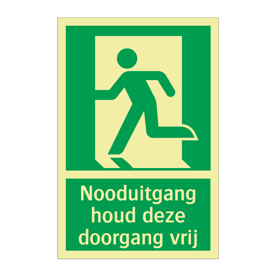 Noodbord met tekst Nooduitgang houd deze doorgang vrij