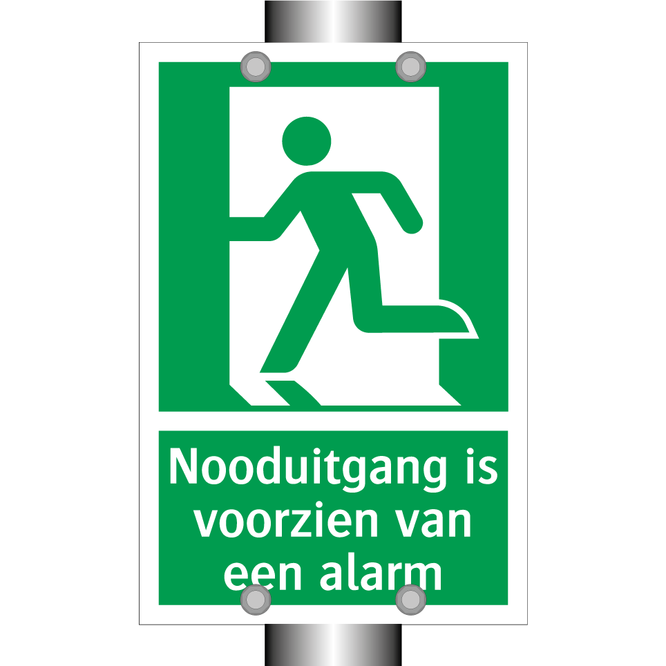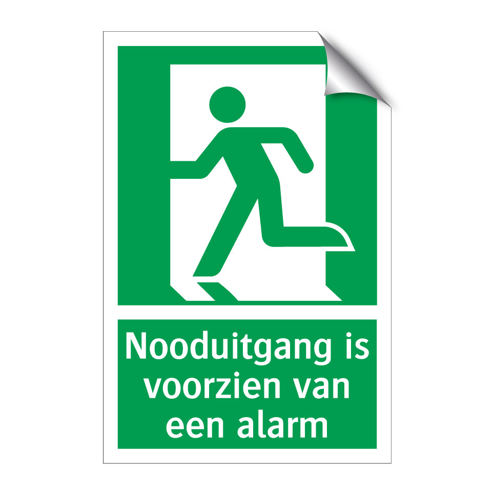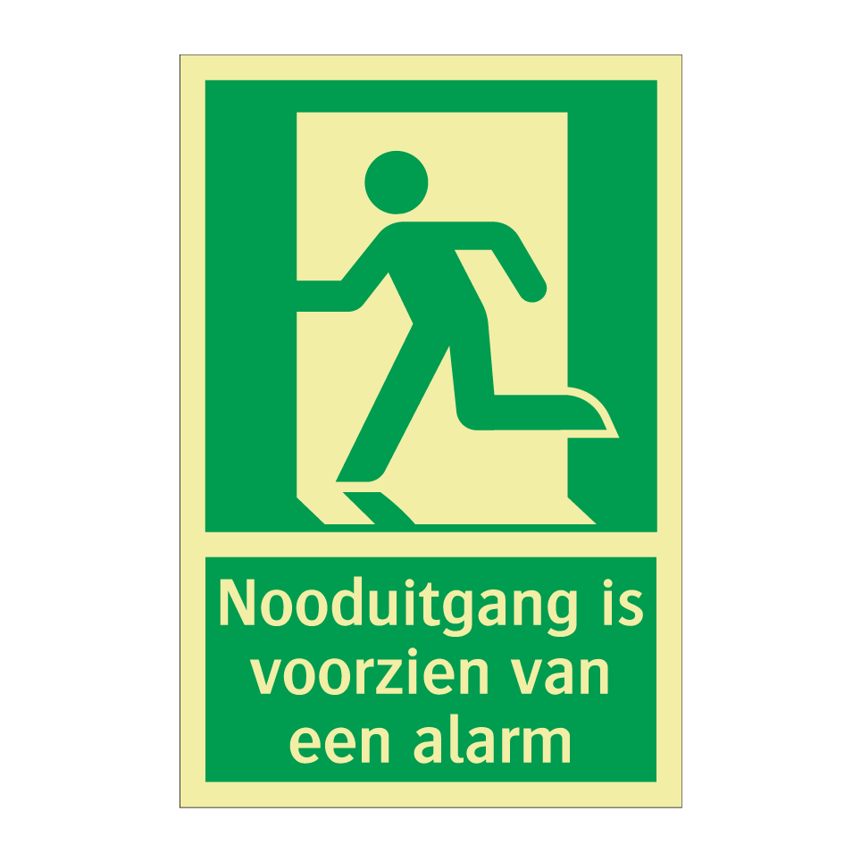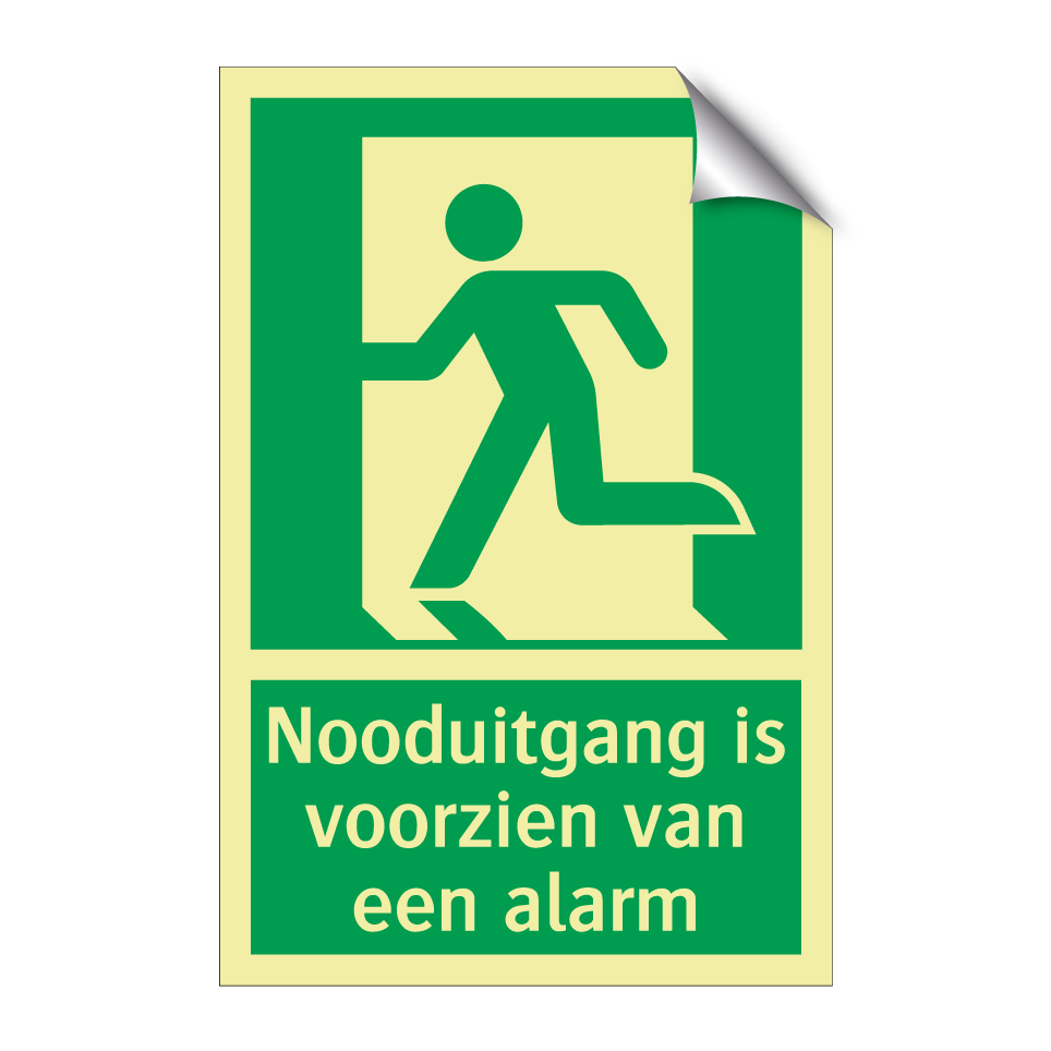 Noodbord met tekst Nooduitgang is voorzien van een alarm