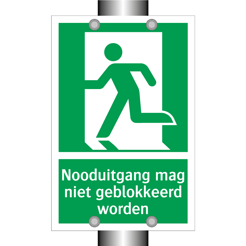 Noodbord met tekst Nooduitgang mag niet geblokkeerd worden