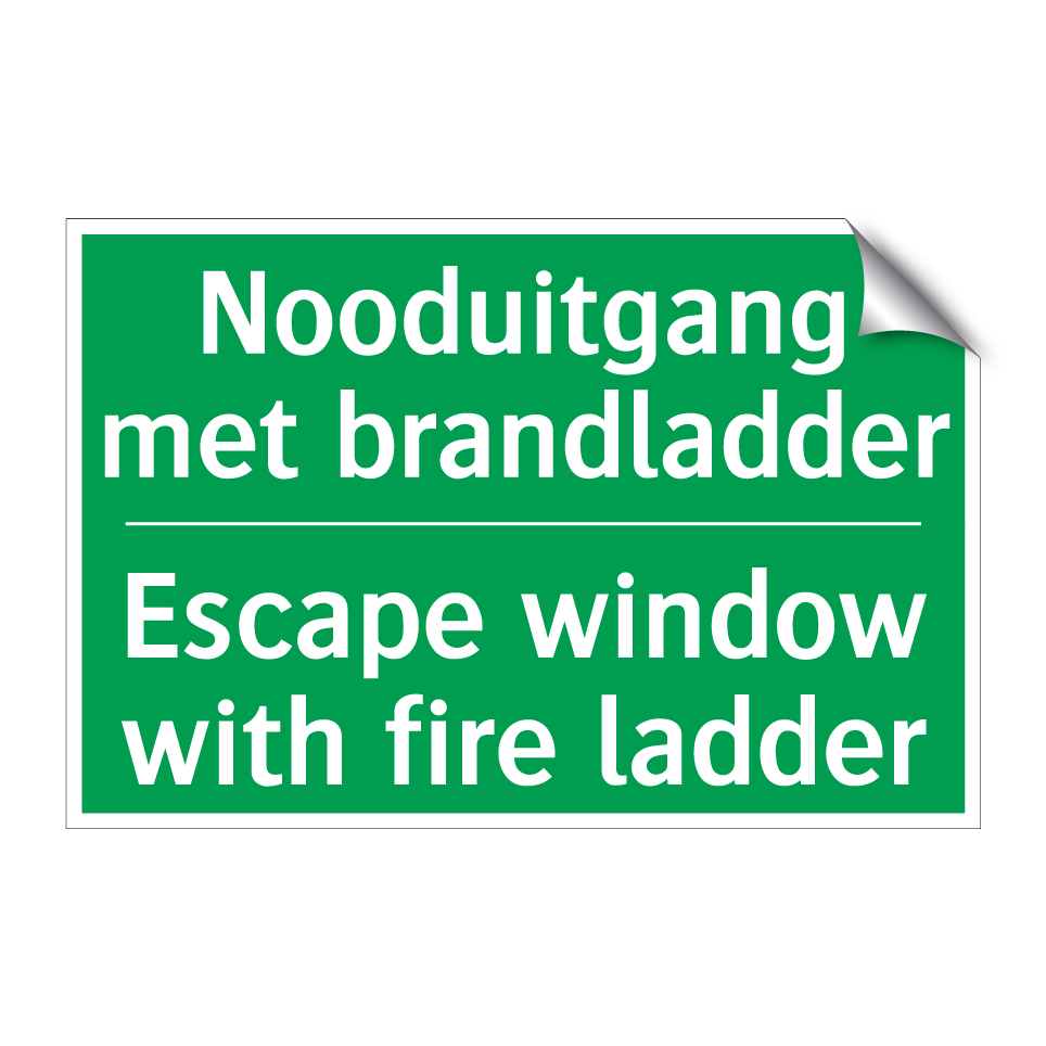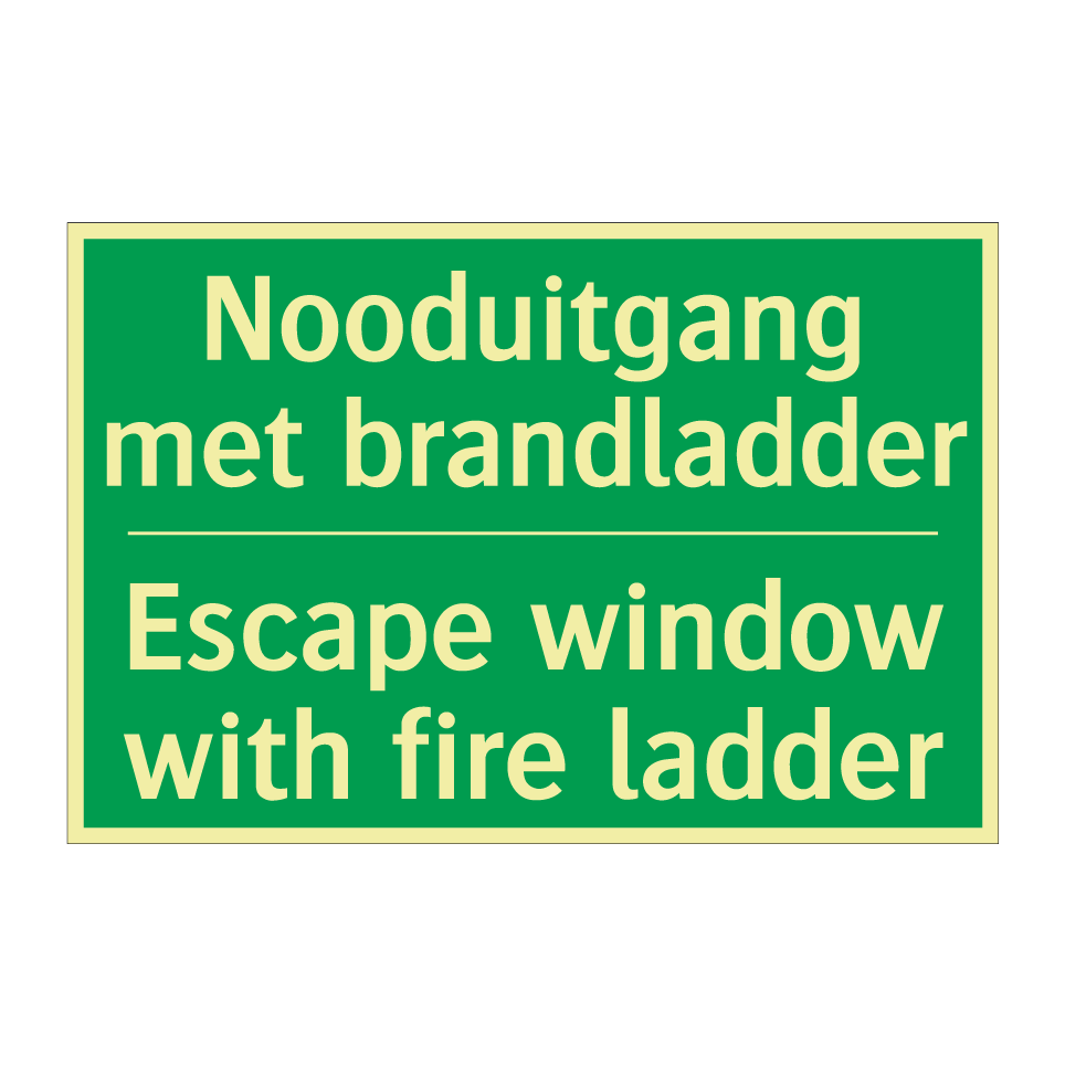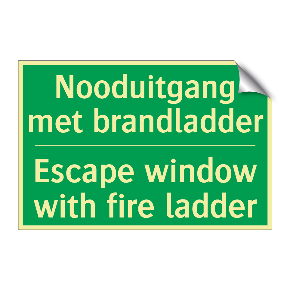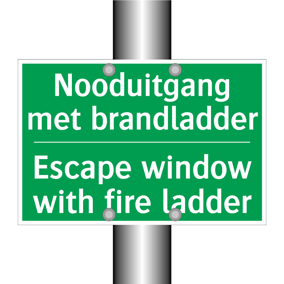 Noodbord met tekst Nooduitgang met brandladder / Escape window with fire ladder