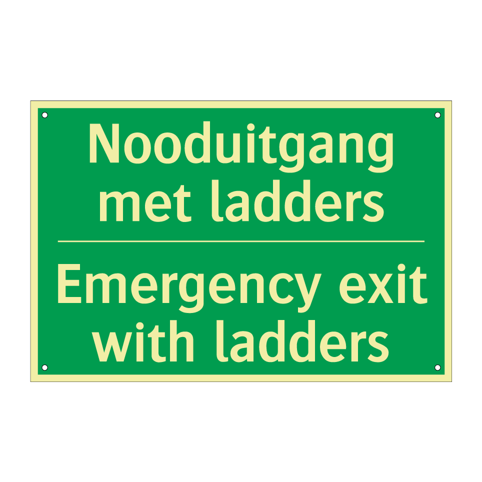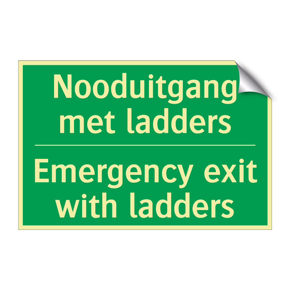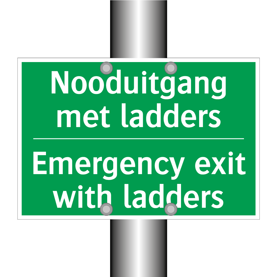 Noodbord met tekst Nooduitgang met ladders / Emergency exit with ladders