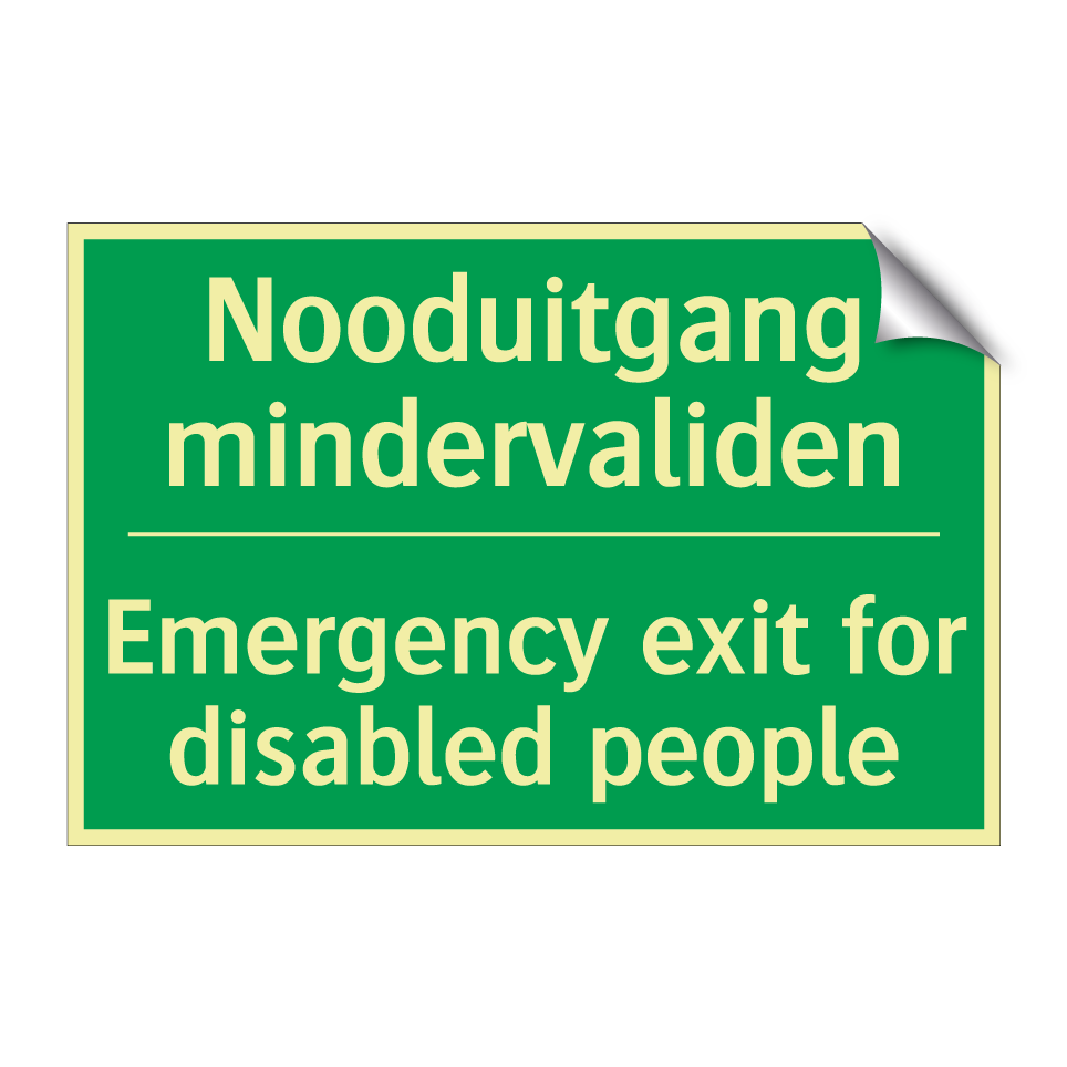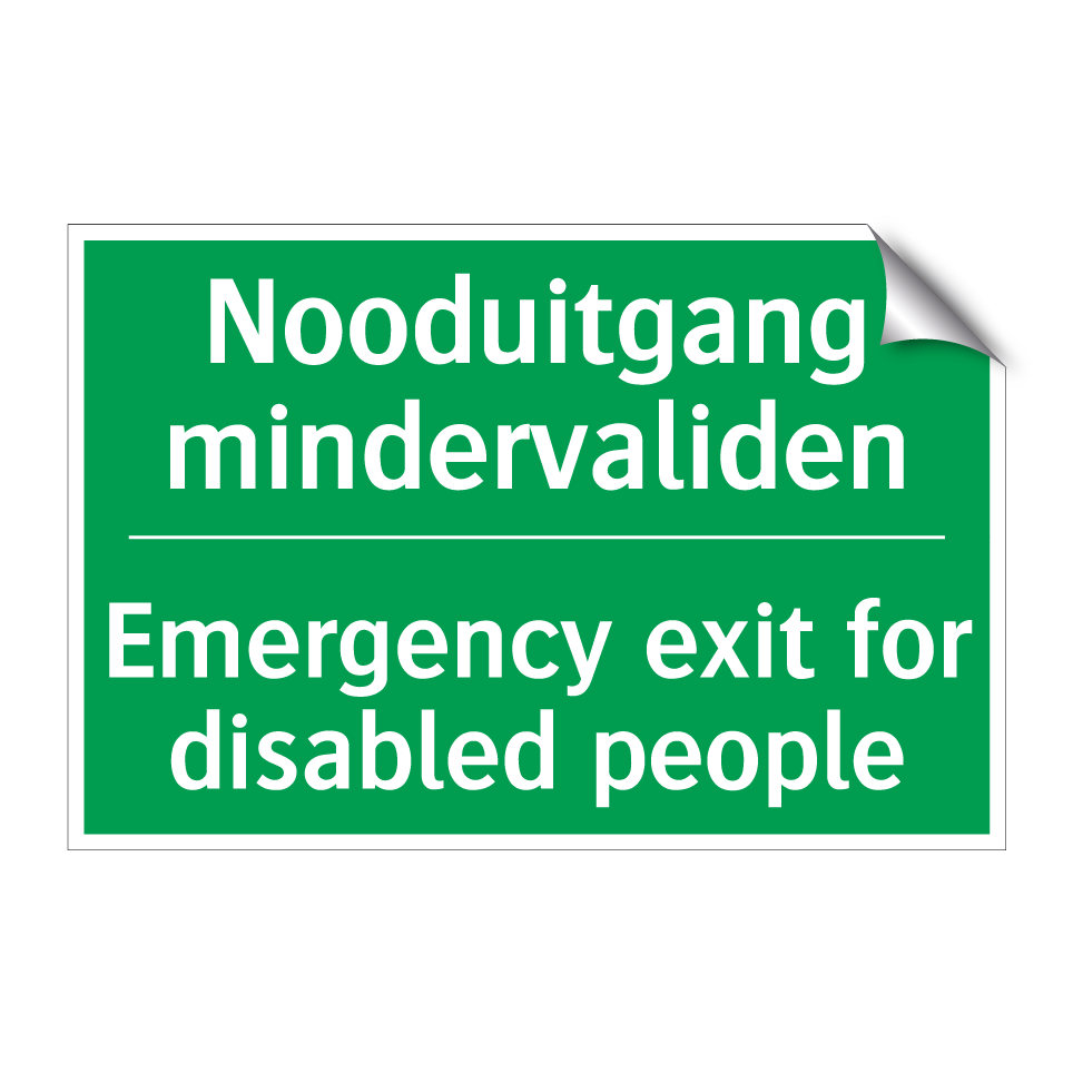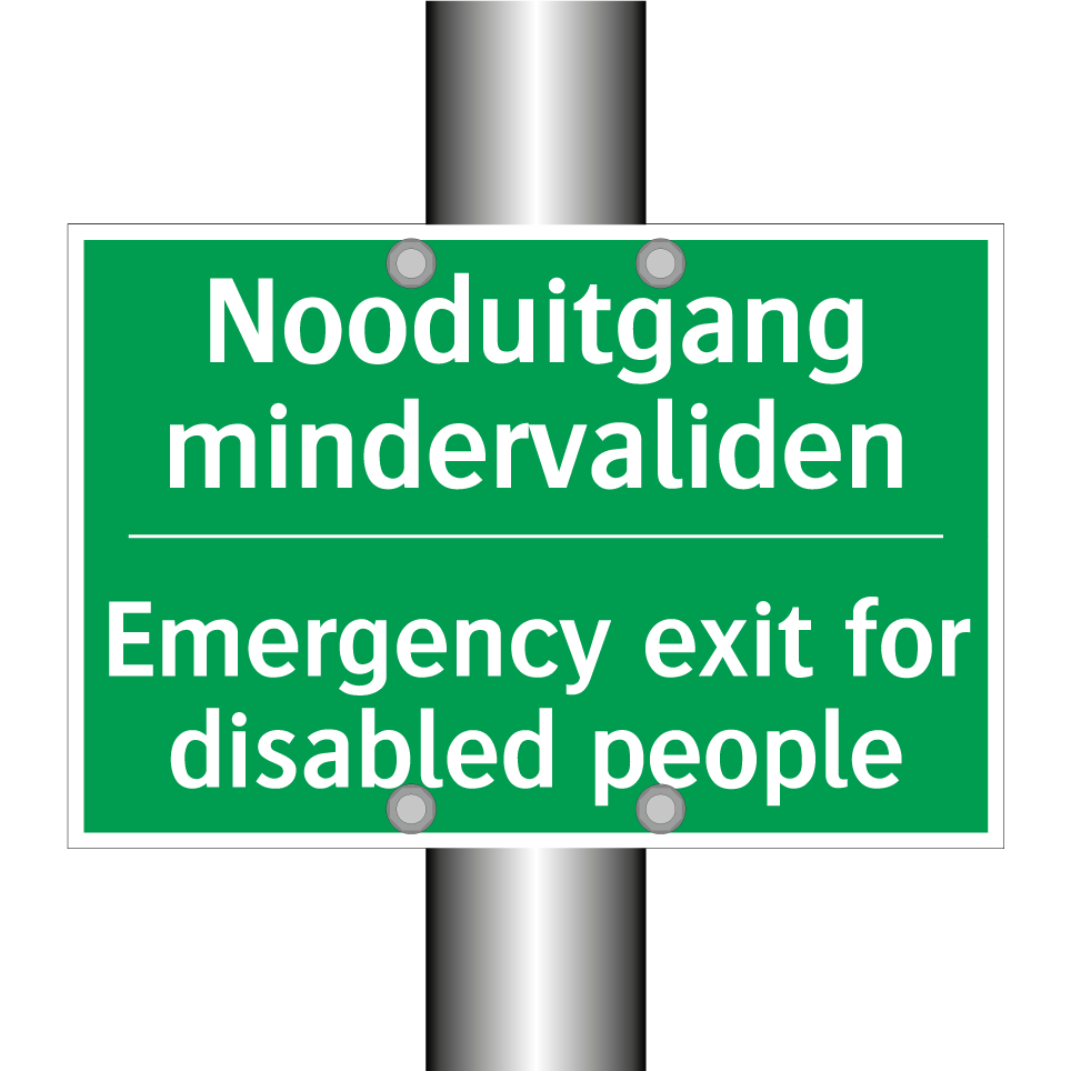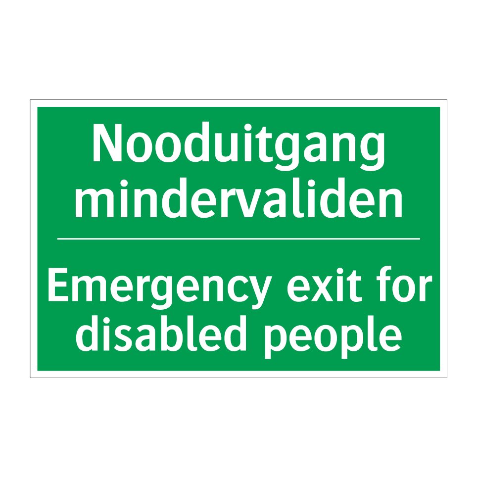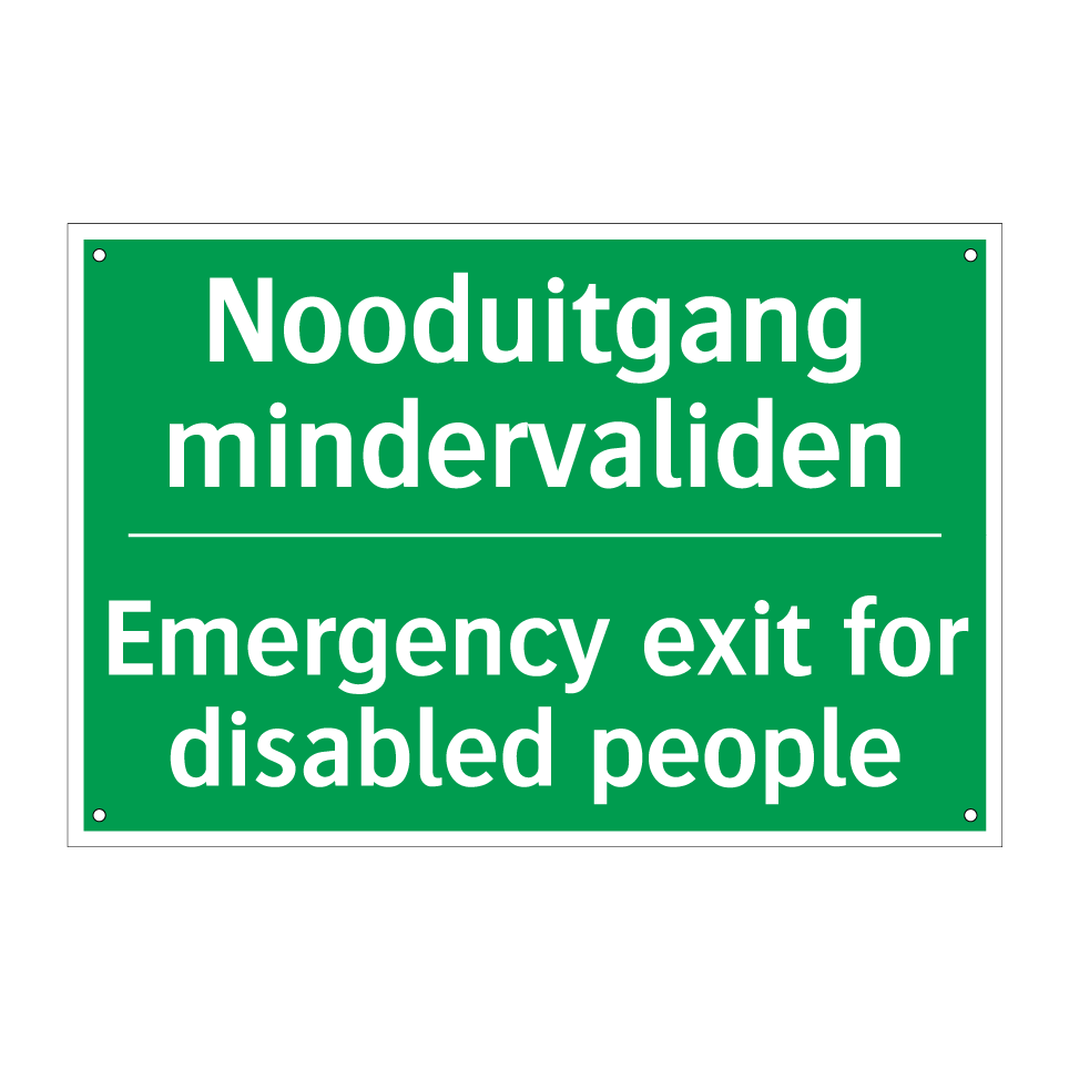 Noodbord met tekst Nooduitgang mindervaliden / Emergency exit for disabled people