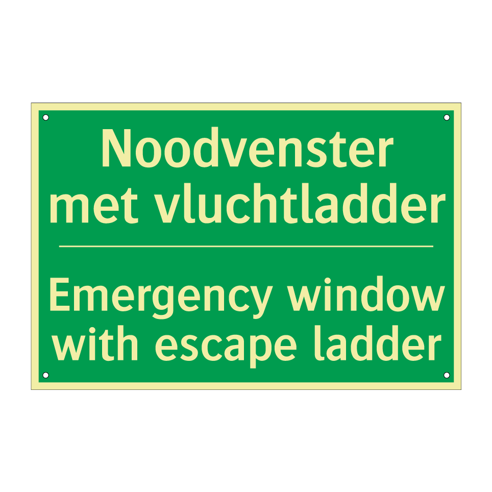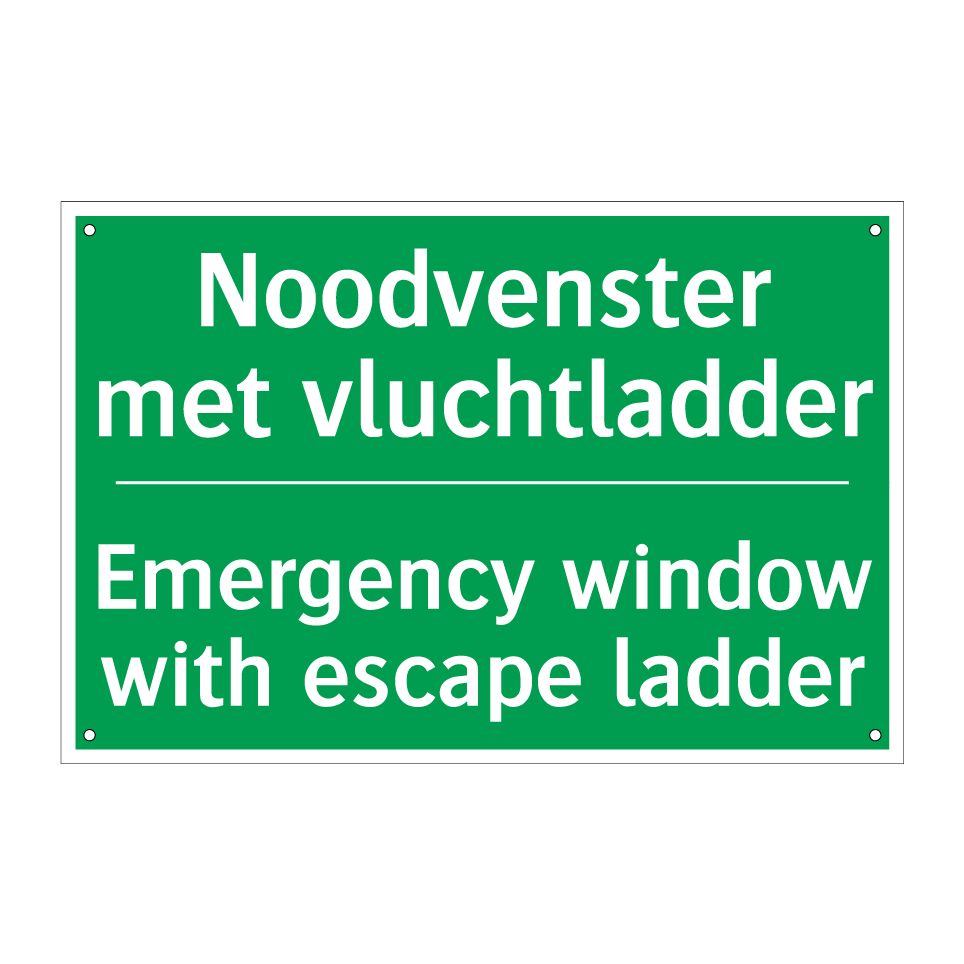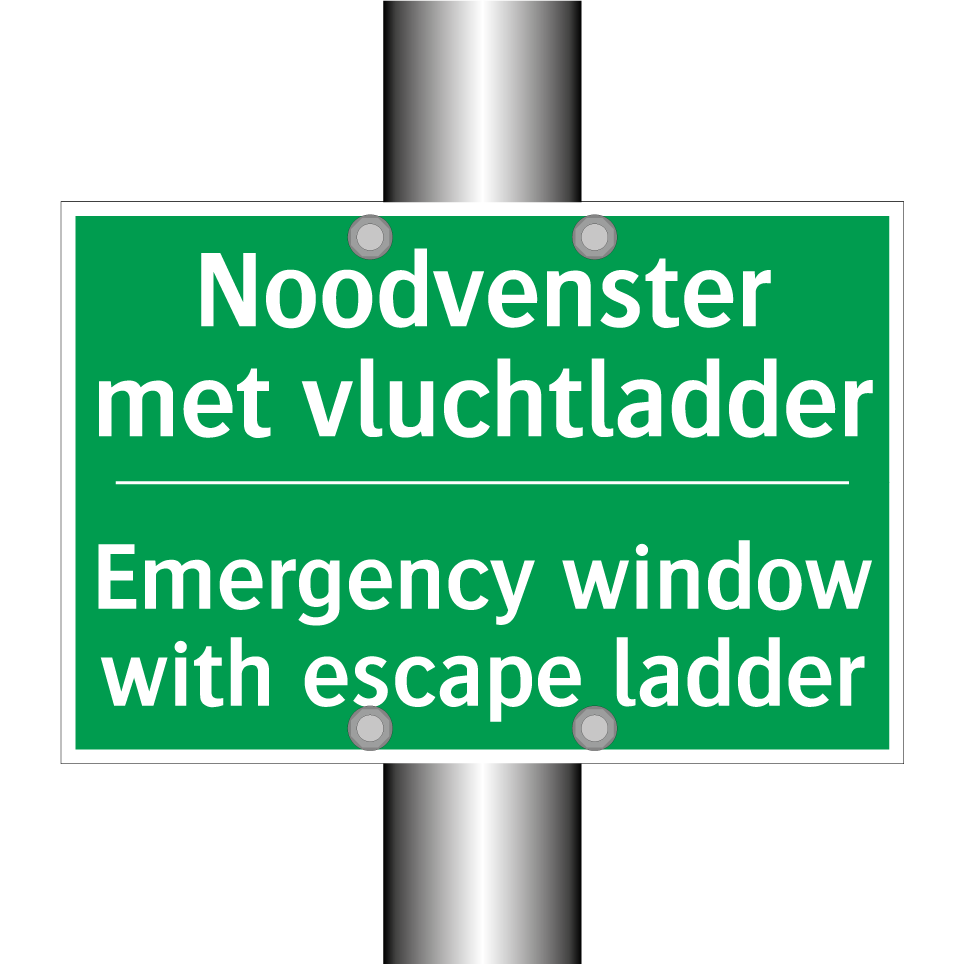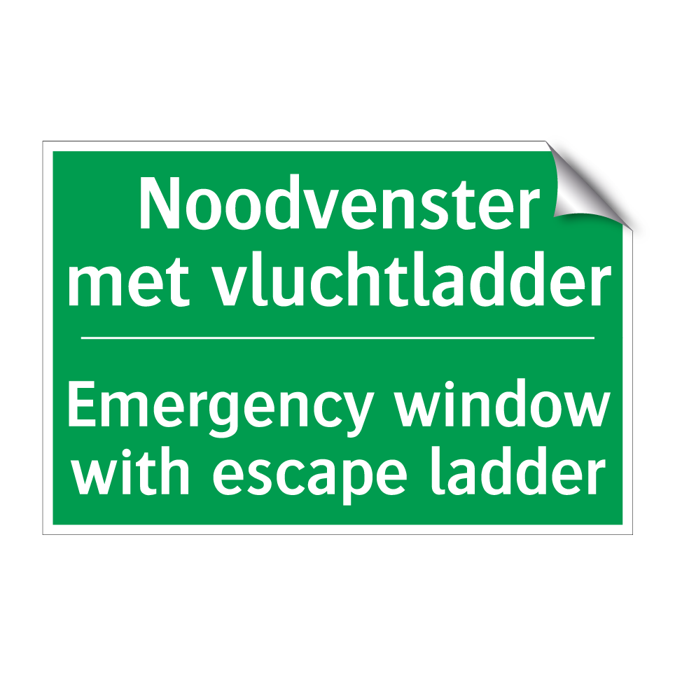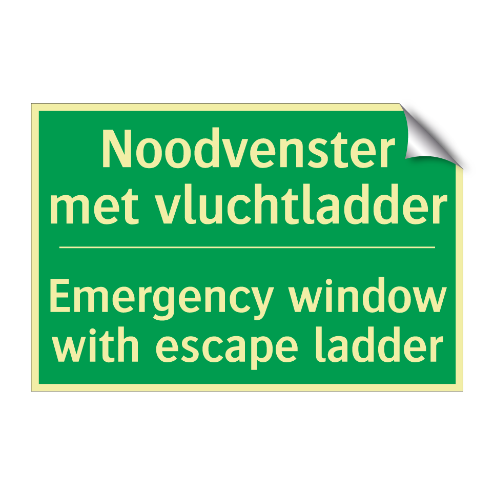 Noodbord met tekst Noodvenster met vluchtladder / Emergency window with escape ladder