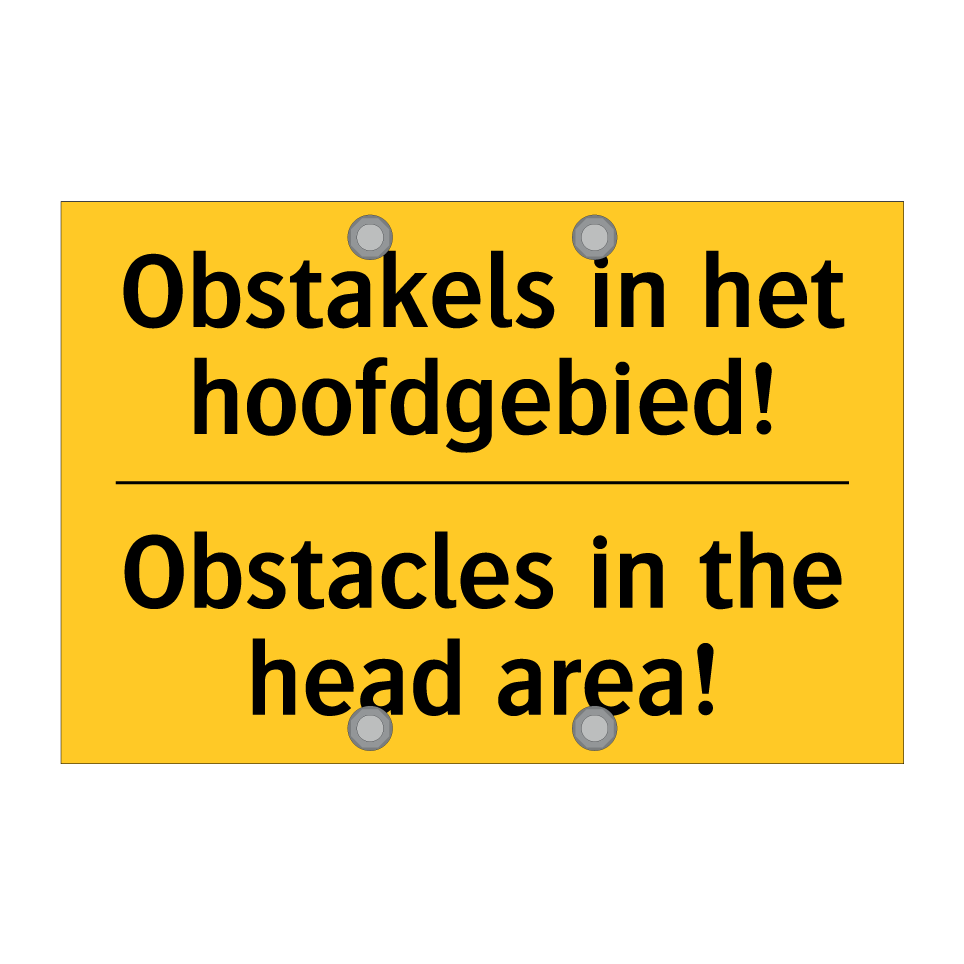 Waarschuwingsbord met de tekst Obstakels in het hoofdgebied! / Obstacles in the head area!