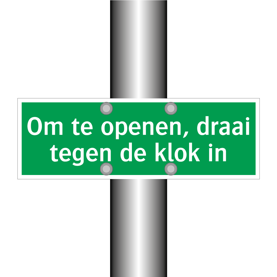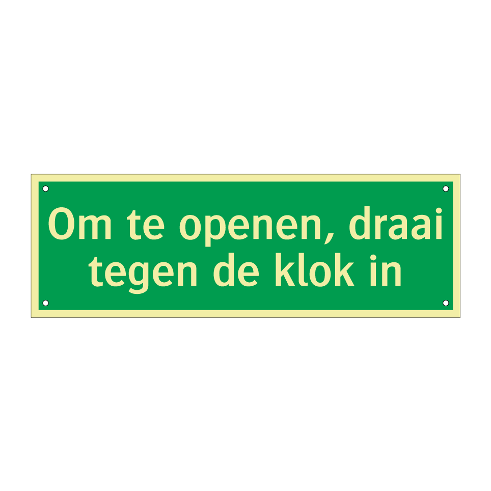 Noodbord met tekst Om te openen, draai tegen de klok in