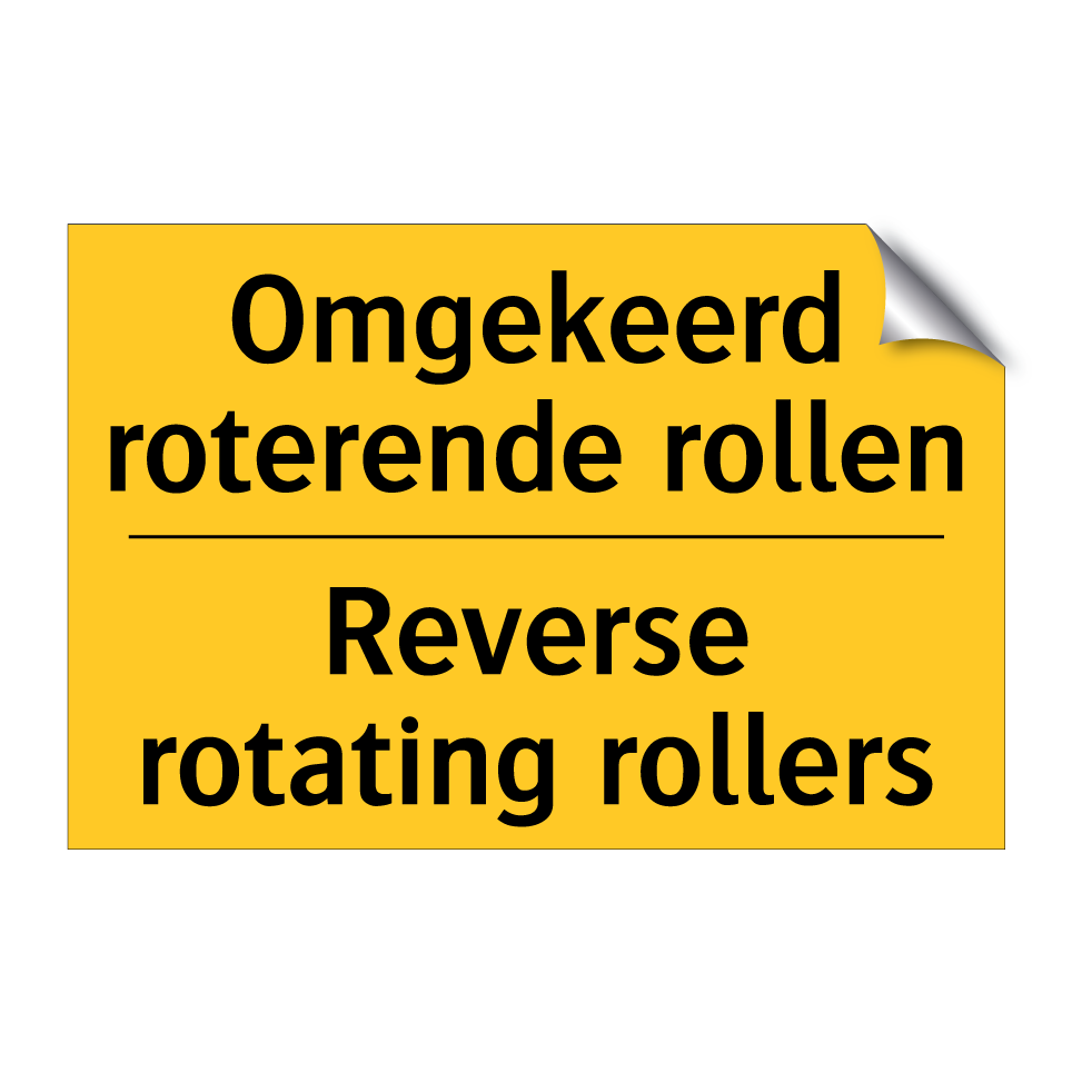Waarschuwingsbord met de tekst Omgekeerd roterende rollen / Reverse rotating rollers