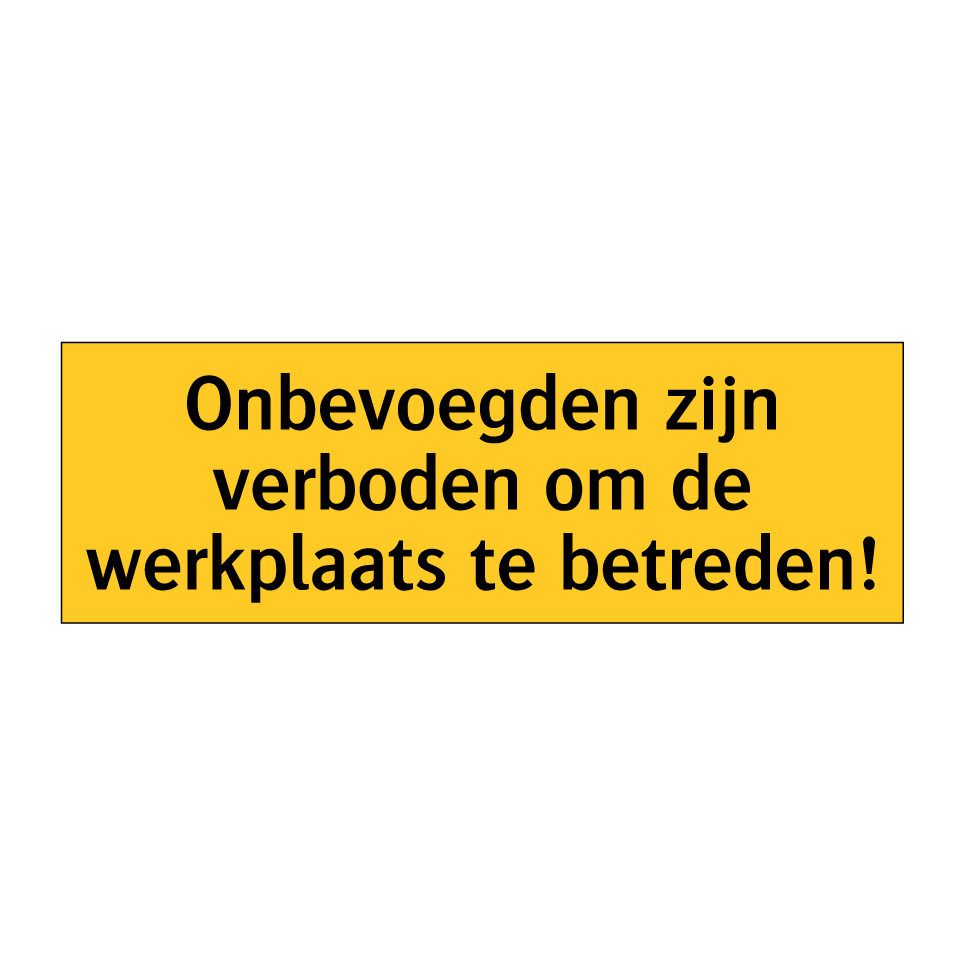 Deze waarschuwingsbord is essentieel voor het handhaven van de veiligheid op de werkplaats. Het bord waarschuwt onbevoegden dat toegang tot de werkplaats strikt verboden is, wat helpt om ongewenste bezoekers buiten te houden en potentiële ongelukken te voorkomen. Plaats deze waarschuwingsbord bij ingangen, poorten of andere toegangswegen naar de werkplaats om duidelijk te maken dat alleen geautoriseerd personeel toegang heeft. Dit bordje is ideaal voor fabrieken, bouwplaatsen, magazijnen en andere industriële omgevingen waar veiligheid en toegangscontrole van groot belang zijn. Zorg voor een veilige werkomgeving door deze duidelijke en opvallende waarschuwingsbord te gebruiken.
