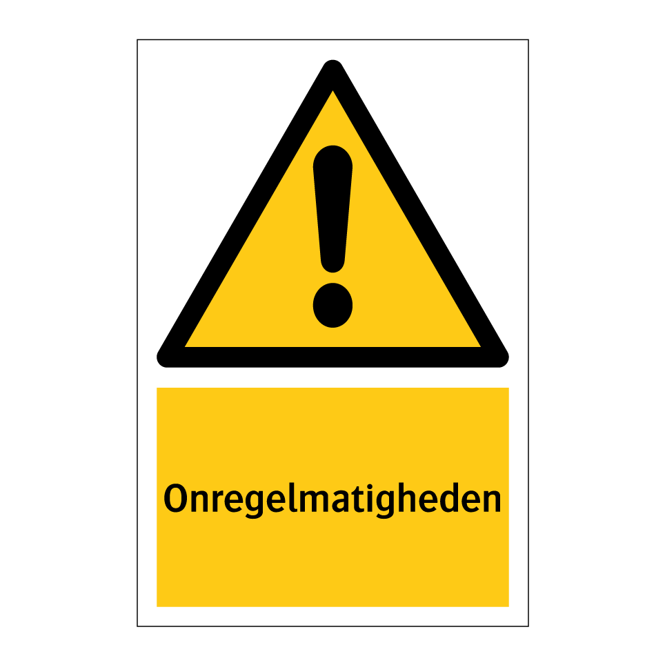 Waarschuwingsbord met de tekst Onregelmatigheden