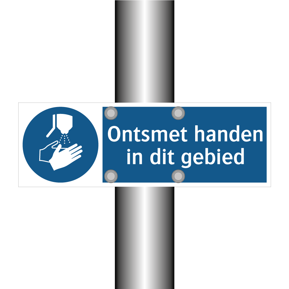 Verplichte bord met de tekst Ontsmet handen in dit gebied