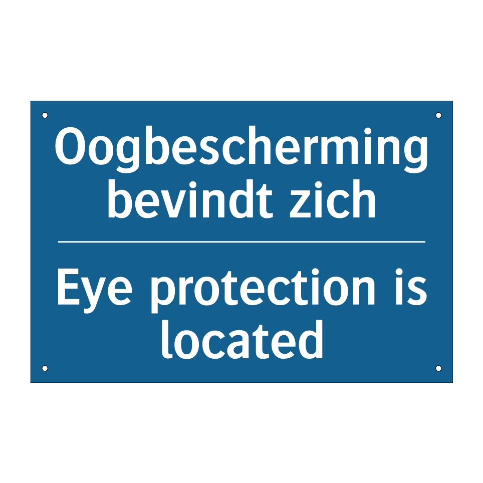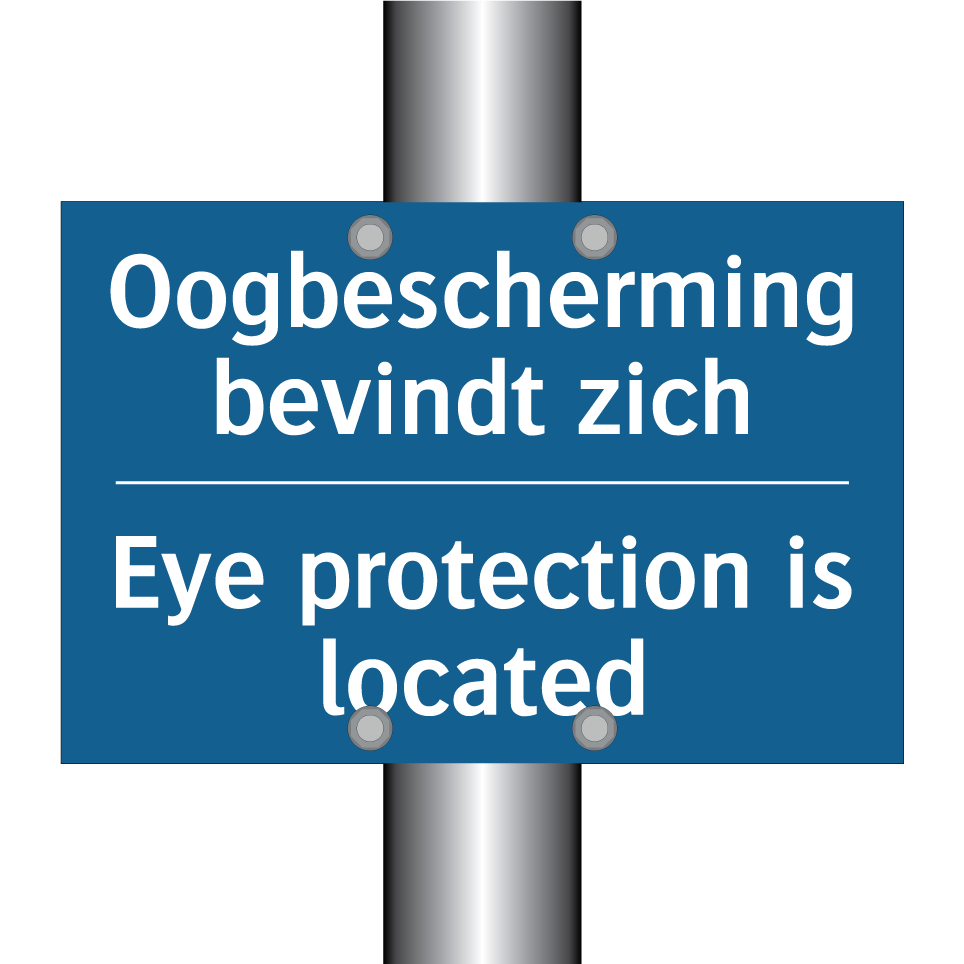 Verplichte bord met de tekst Oogbescherming bevindt zich - Eye protection is located: XX