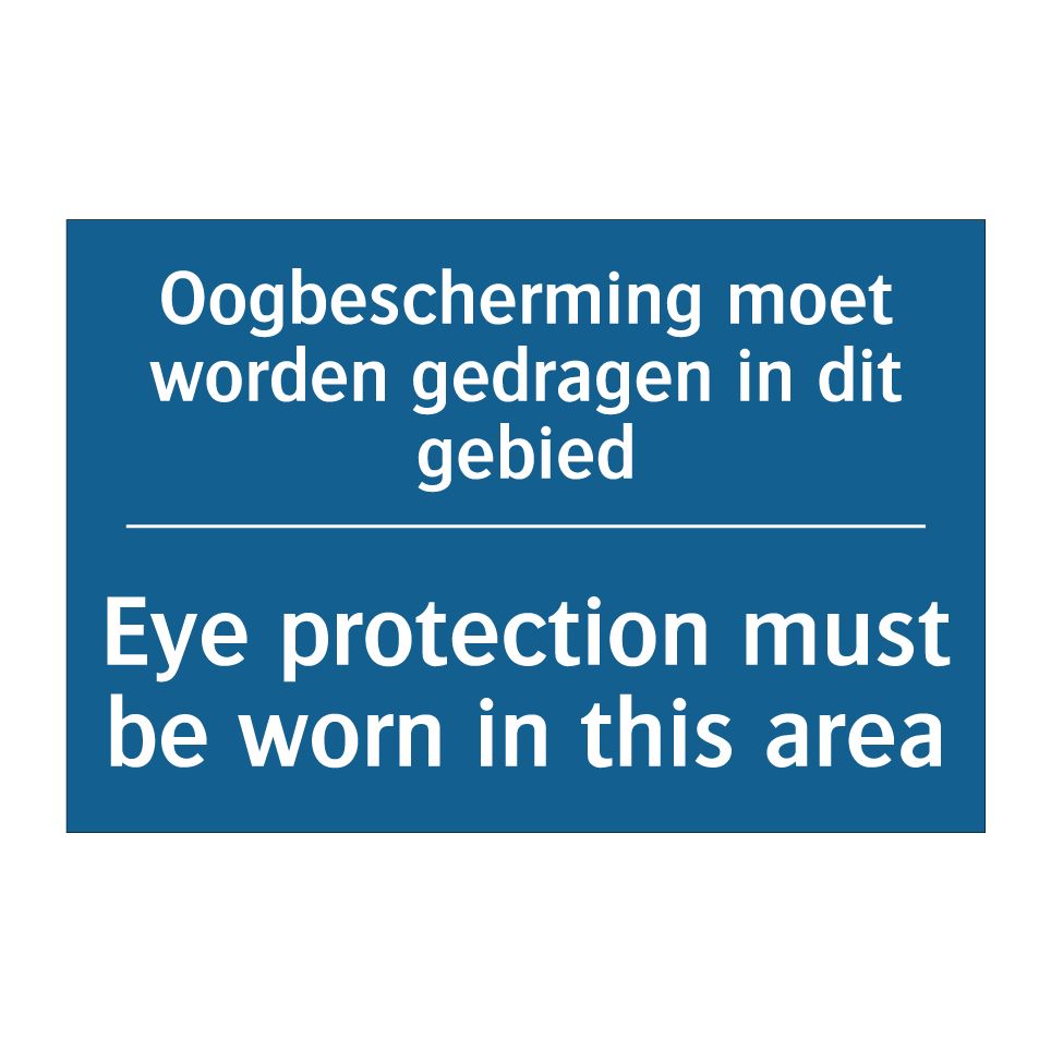 Deze verplichte bord is essentieel voor het waarborgen van de veiligheid in omgevingen waar oogbescherming noodzakelijk is. Met een opvallende blauwe achtergrond en witte tekst, communiceert het bord duidelijk dat oogbescherming verplicht is in het aangegeven gebied. De tweetalige tekst, in zowel Nederlands als Engels, maakt het bord ideaal voor internationale werkomgevingen, zoals fabrieken, laboratoria en bouwplaatsen, waar personeel van verschillende nationaliteiten werkt. Door de duidelijke instructies helpt dit verplichte bord om het risico op oogletsel te minimaliseren en een veilige werkomgeving te bevorderen. Plaats het bord op zichtbare locaties bij ingangen of werkstations om ervoor te zorgen dat iedereen op de hoogte is van de veiligheidsvoorschriften.